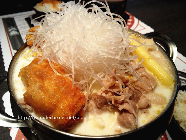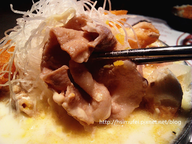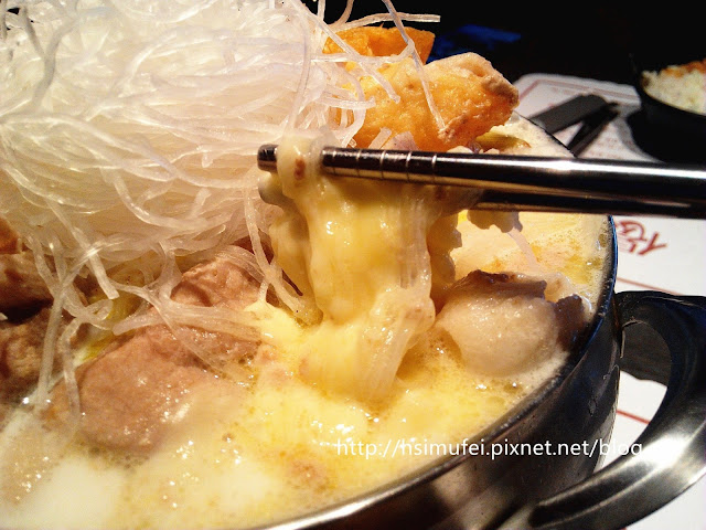 第一次來吃老實說也不知道要點什麼好,姑且點店內人氣最高的偈亭起士奶豬肉鍋。