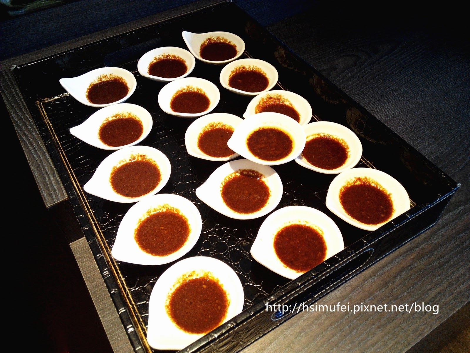 上層放置各種醬料,下層則提供空碗。