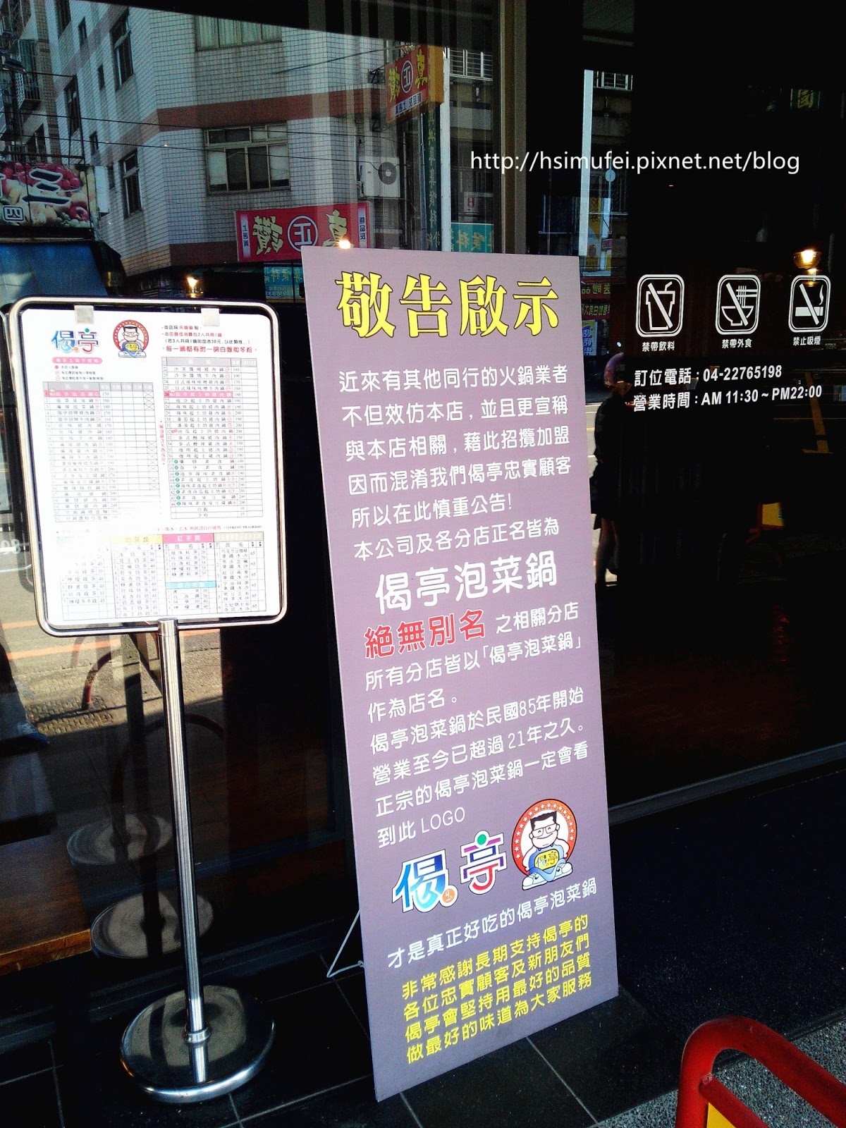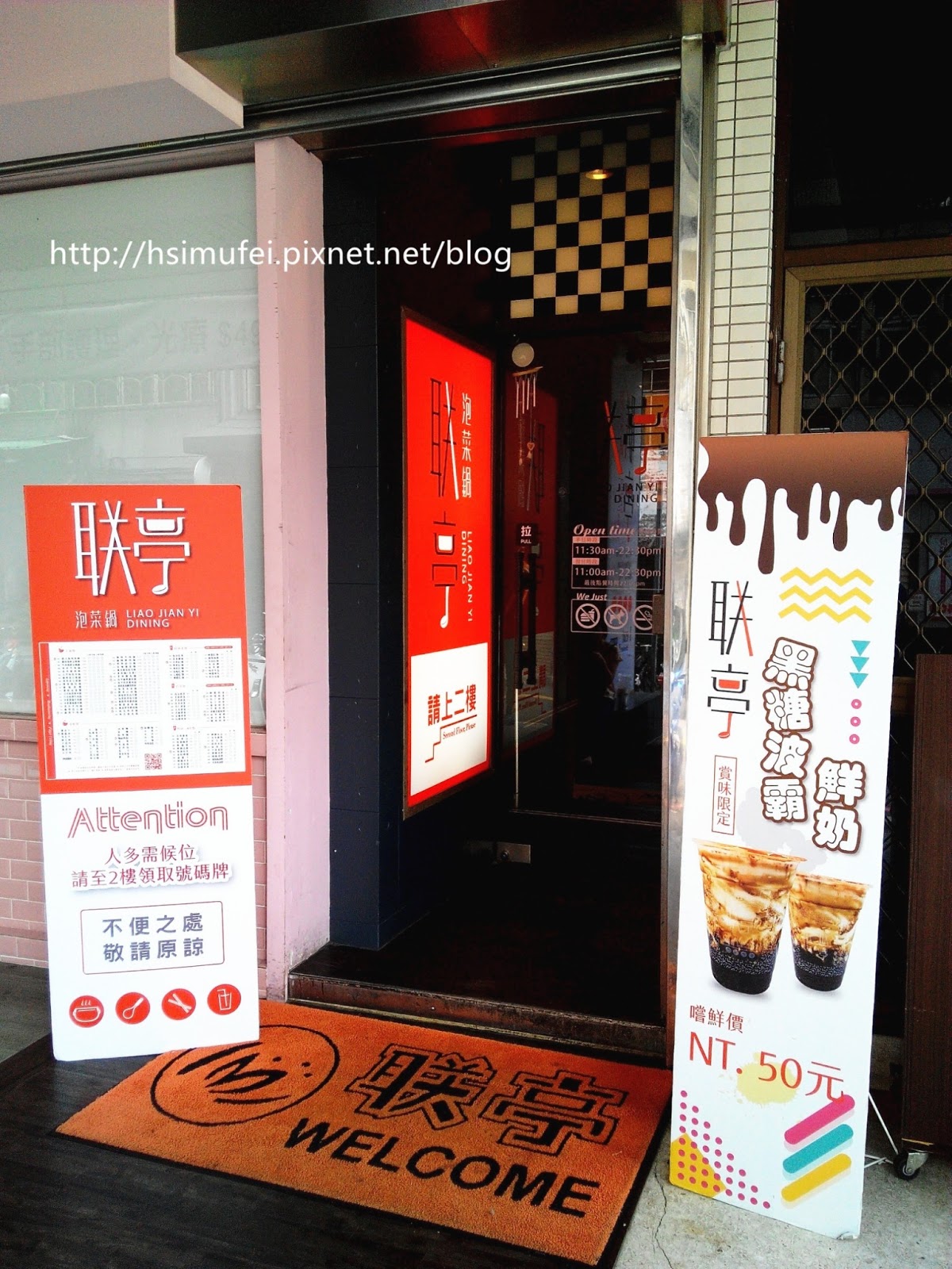 門口處立有正名敬告啟事(立牌上的「示」應更正為「事」才對)與MENU。營業時間為早上十一點半到晚上十點,可用餐到晚上十一點。 【店內環境↓】