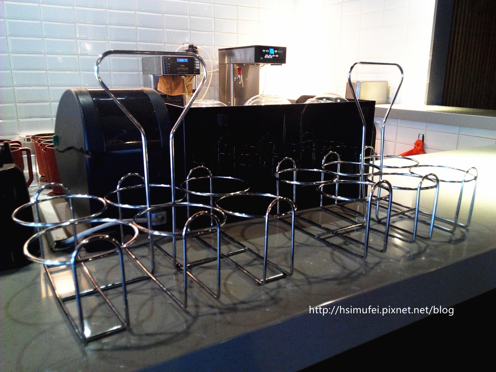 櫃檯上的鐵架造型很吸引我注意,原來是放置客人所點購的飲料所使用的送餐器具。 【候位區↓】