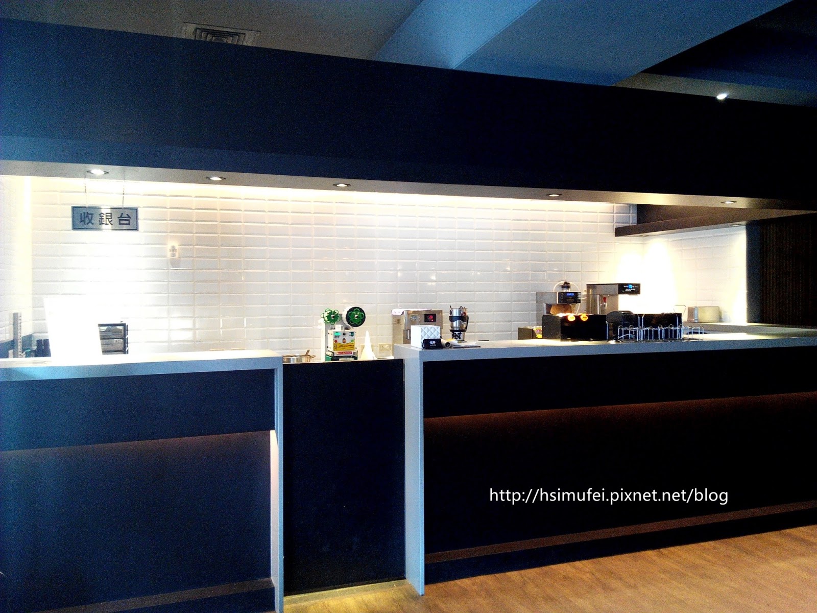 櫃檯位於中間處,以白色磚瓦與用餐區做區隔,點餐後須先到此處結帳。