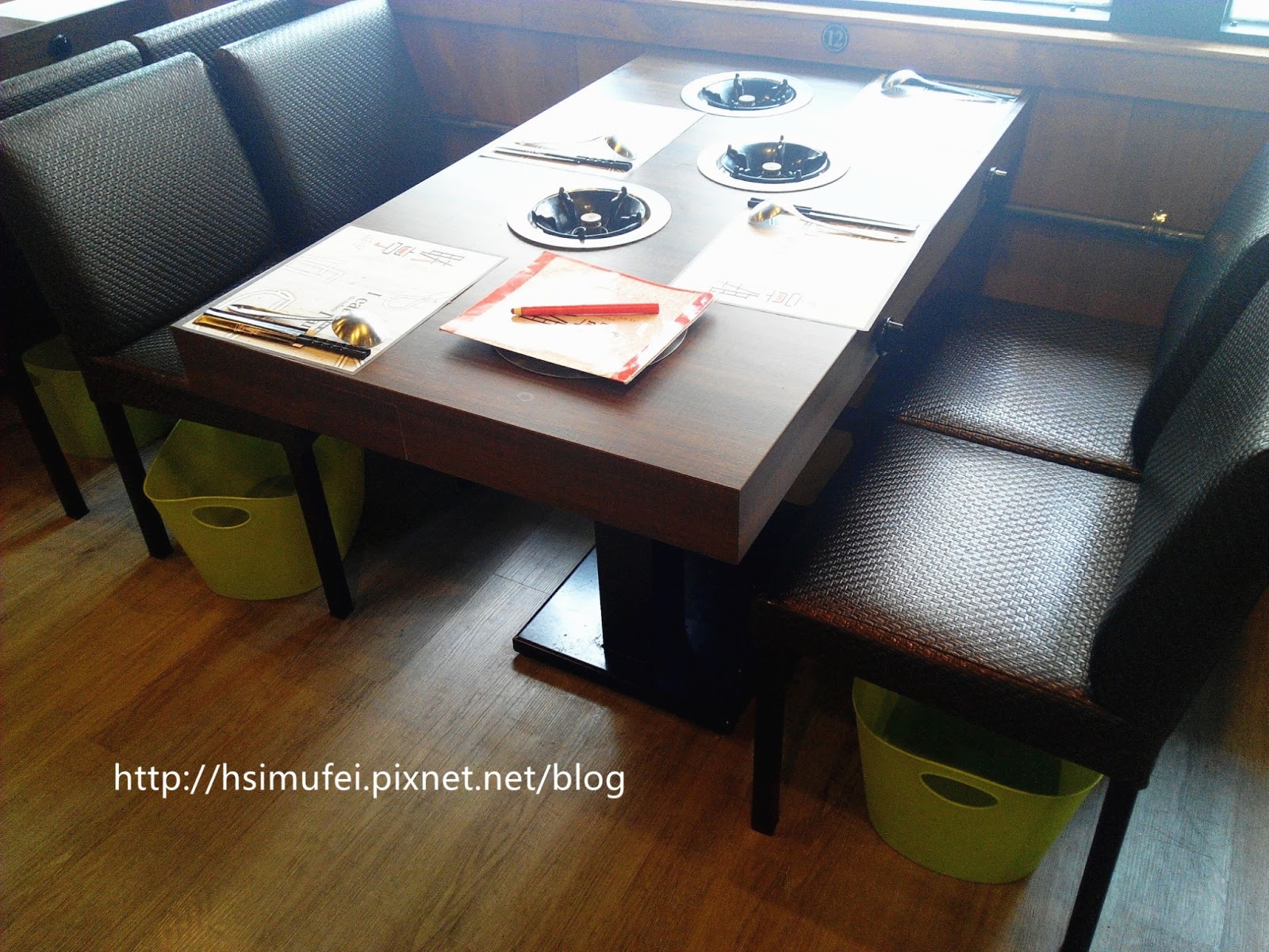 每張桌子上擺有MENU與相對應人數餐具,且每人一爐。