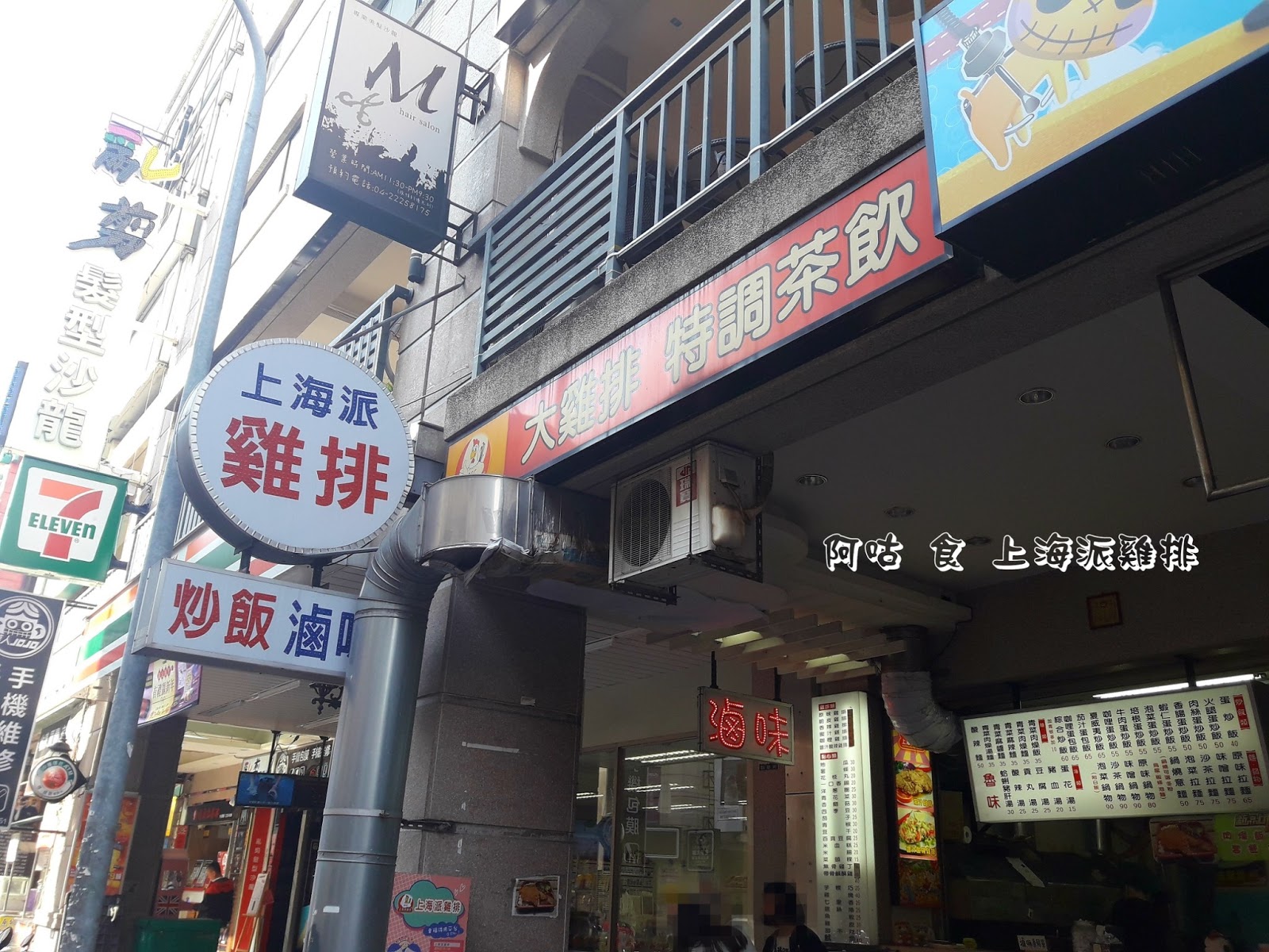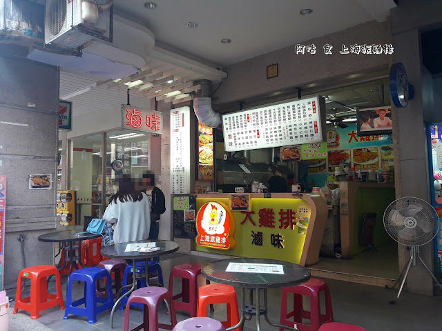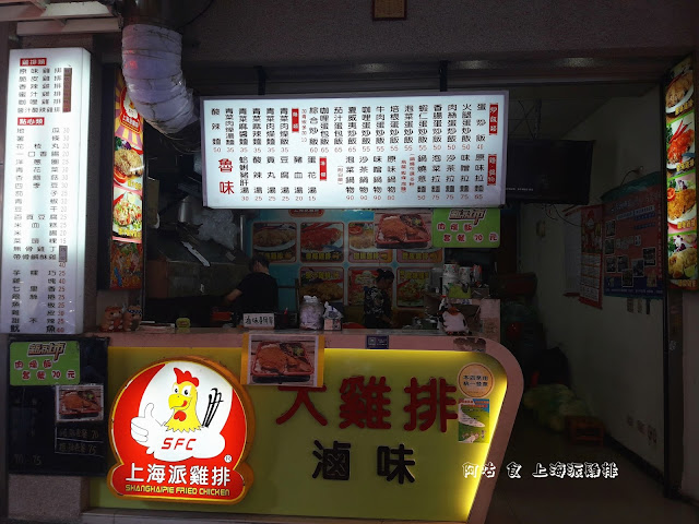 上海派雞排位於錦新街上,隔壁為7-11。招牌標示著店家除販售雞排外,還有炒飯、滷味以及特調茶飲。