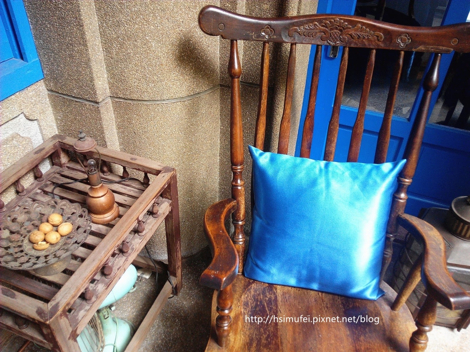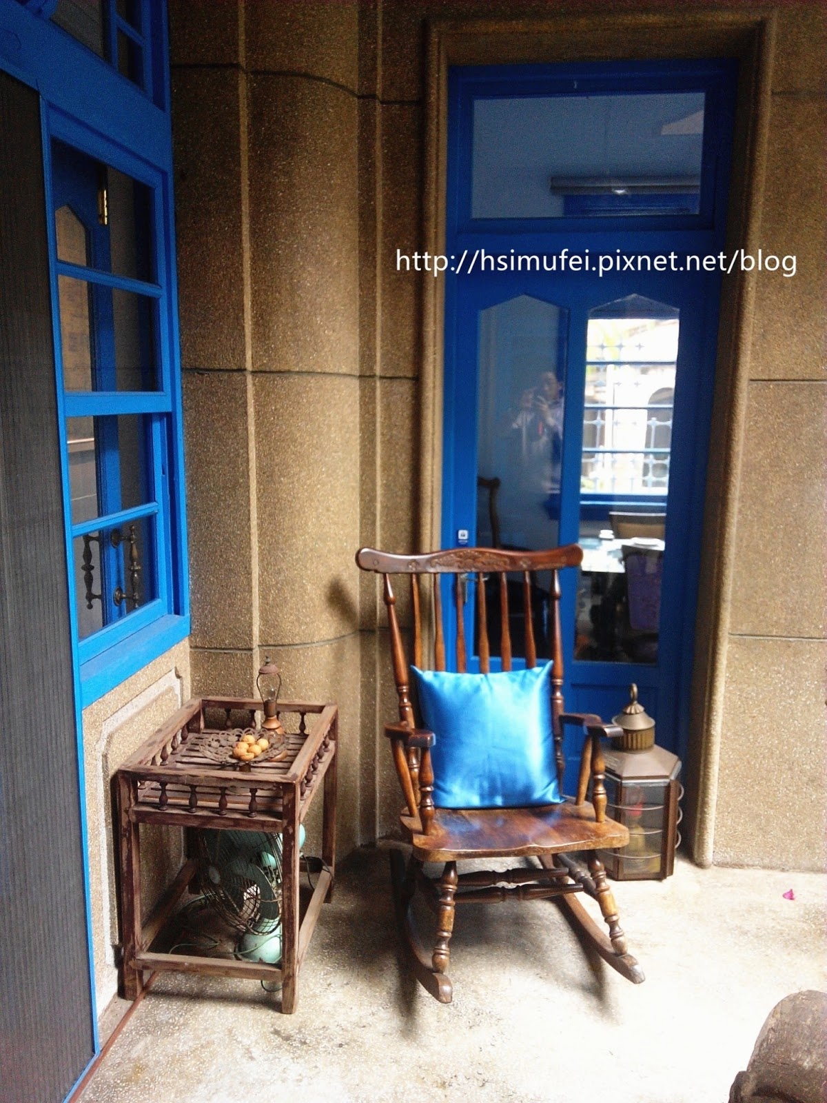 某一側陽臺外放了幾張椅子,其中安樂椅旁邊的桌子上擺有幾顆核桃球,不禁想像起在電視劇中常看到富貴人家坐在這安樂椅上,手裡把玩著核桃球的畫面。