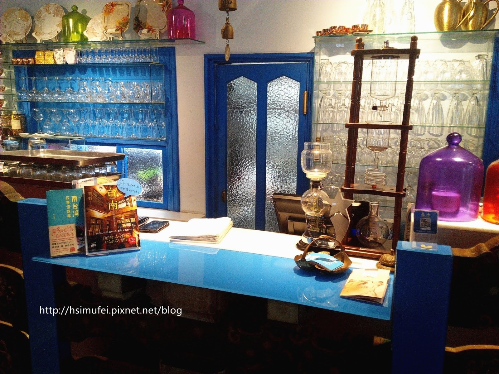 櫃檯也布置得很有格調,置於其前方的,個人猜測是拆下後作為裝飾的舊牌樓。