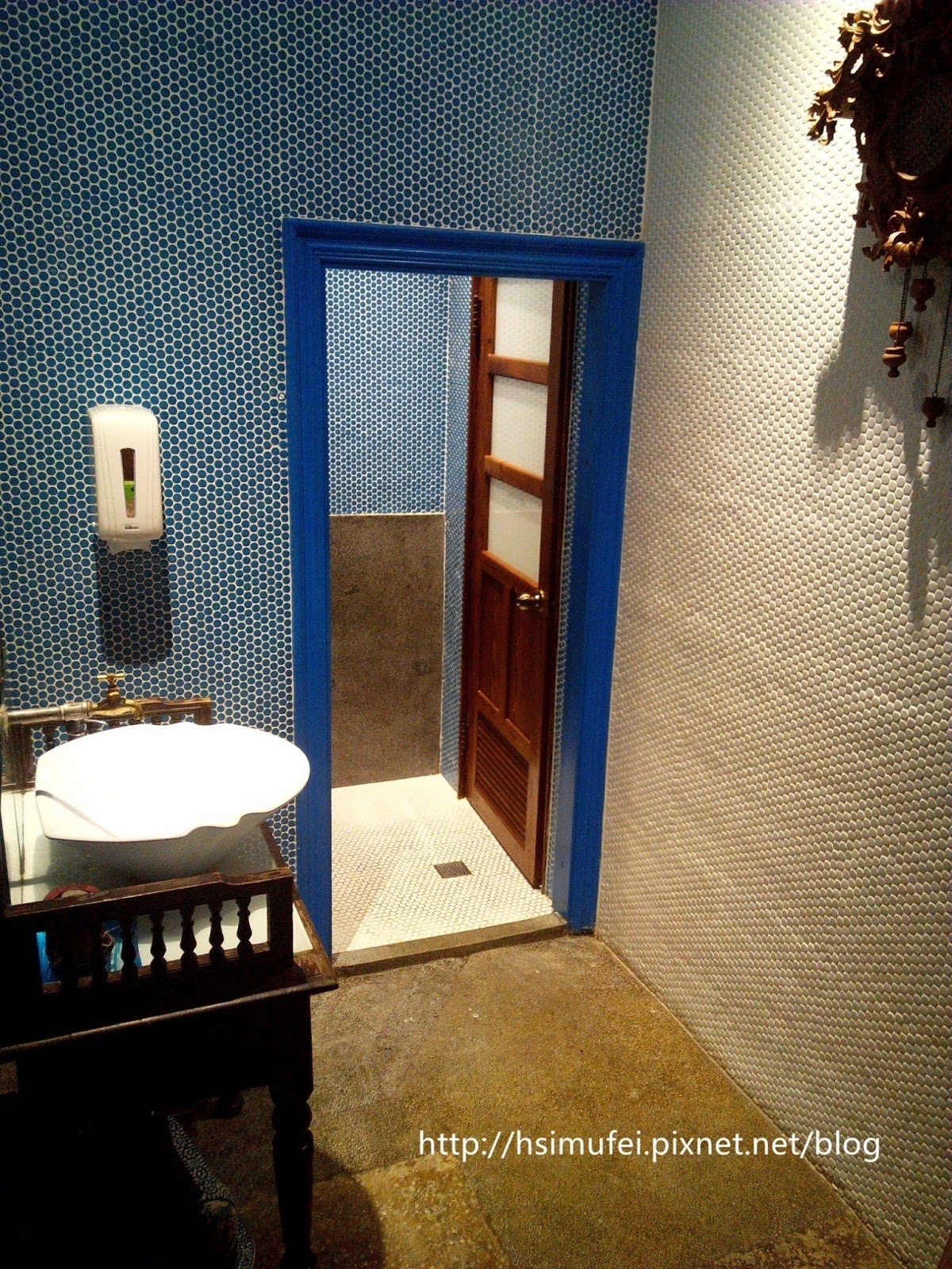 在誤打誤撞下走進了洗手間,雖然設置了些現代的盥洗設備,仍保有濃濃的老宅元素。
