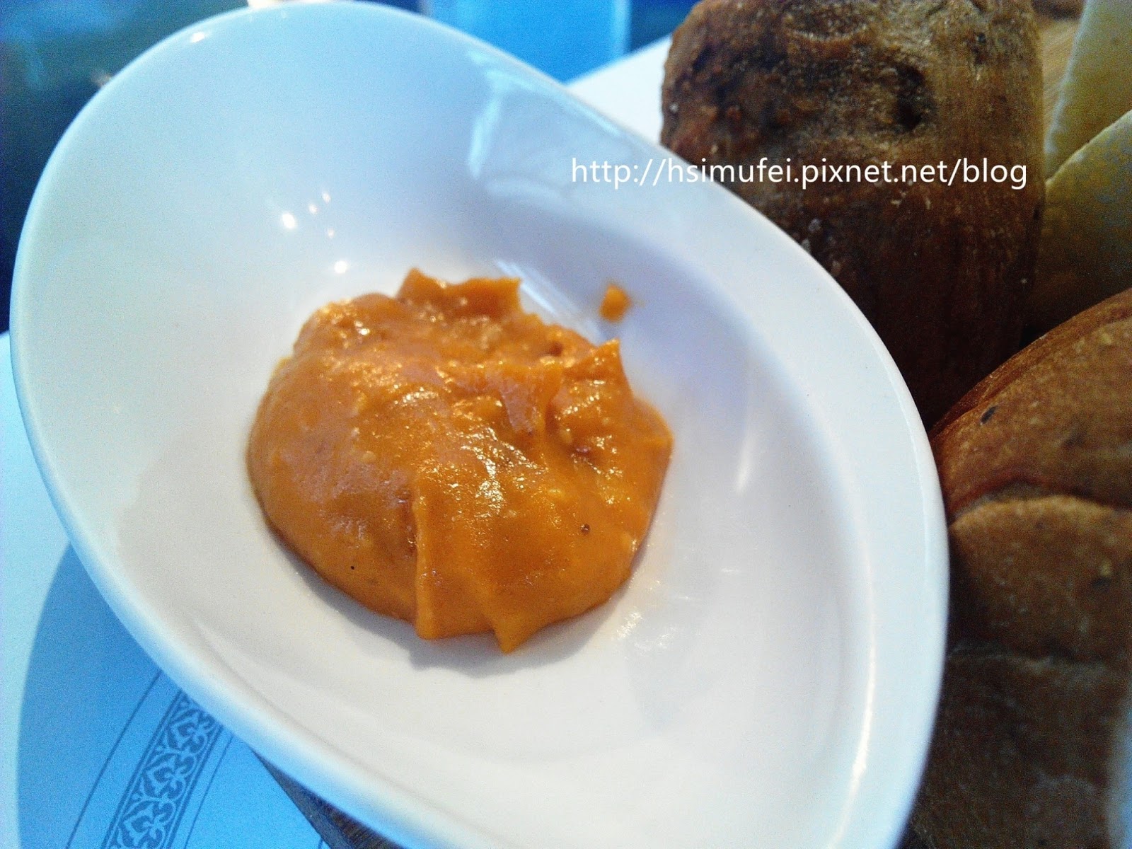 麵包沾醬為店家以堅果與起司調製而成,與麵包非常搭。