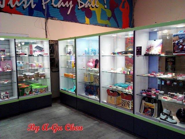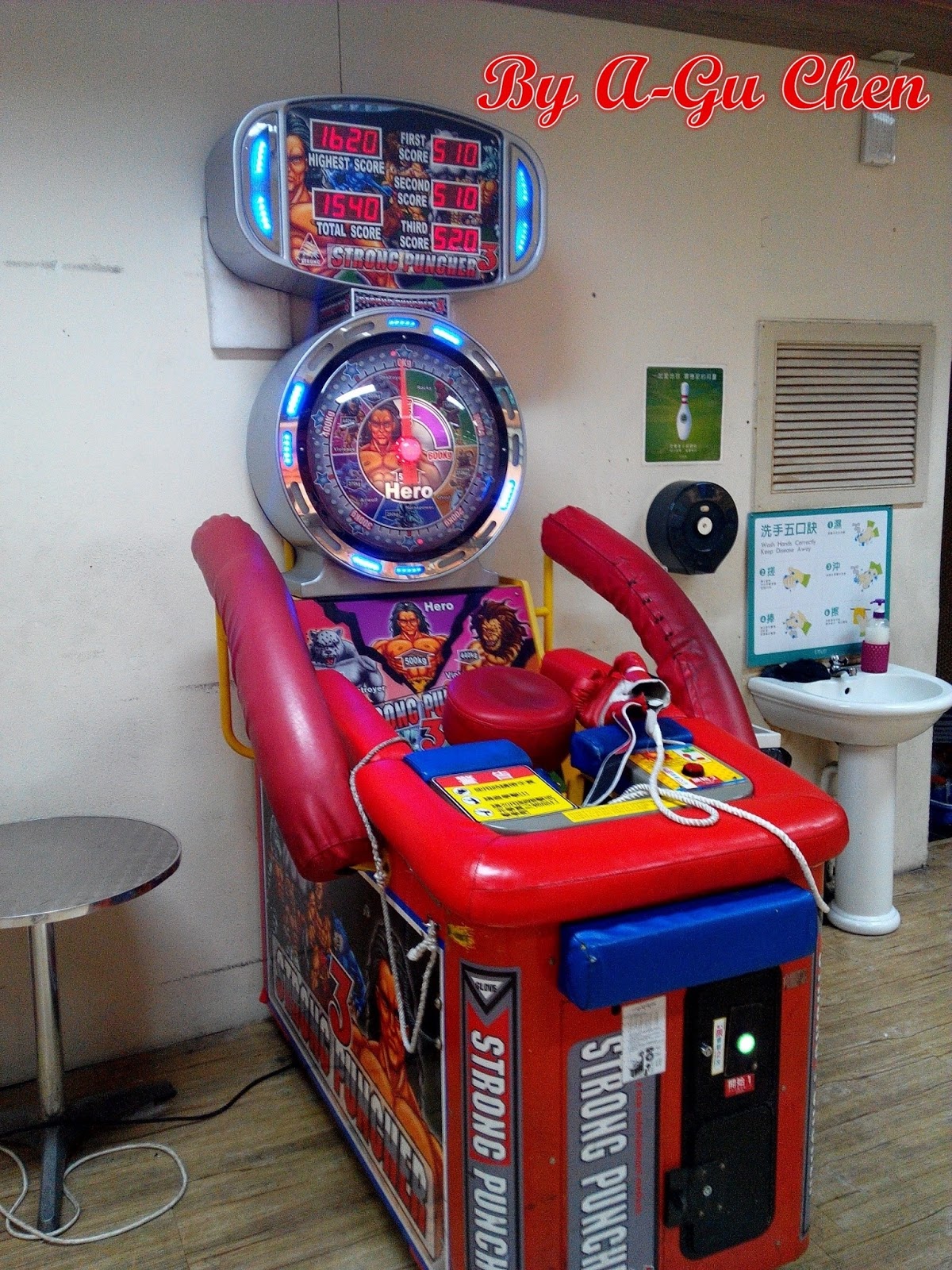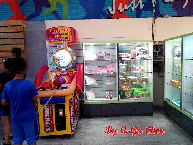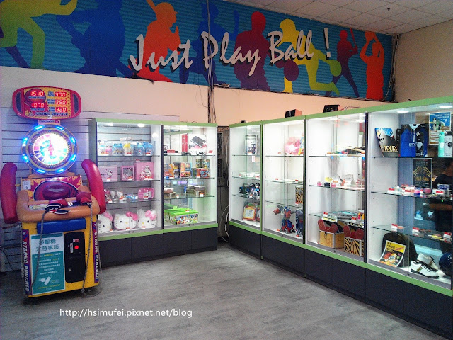 商品展示櫥櫃位於投籃機對面,旁邊有拳擊機,館內共有兩臺。