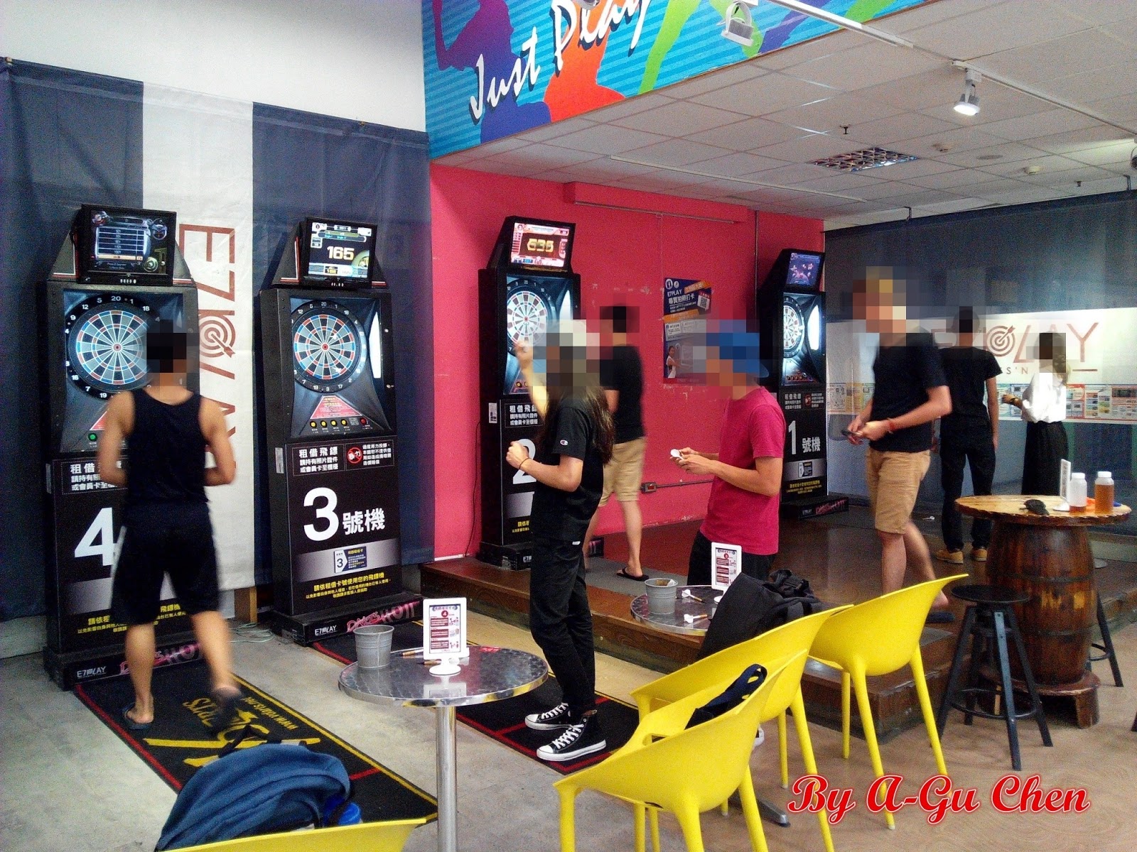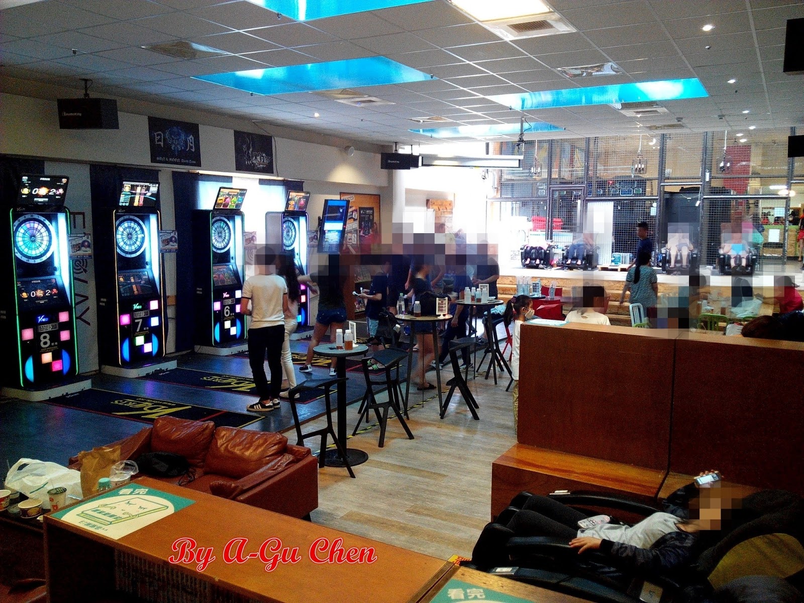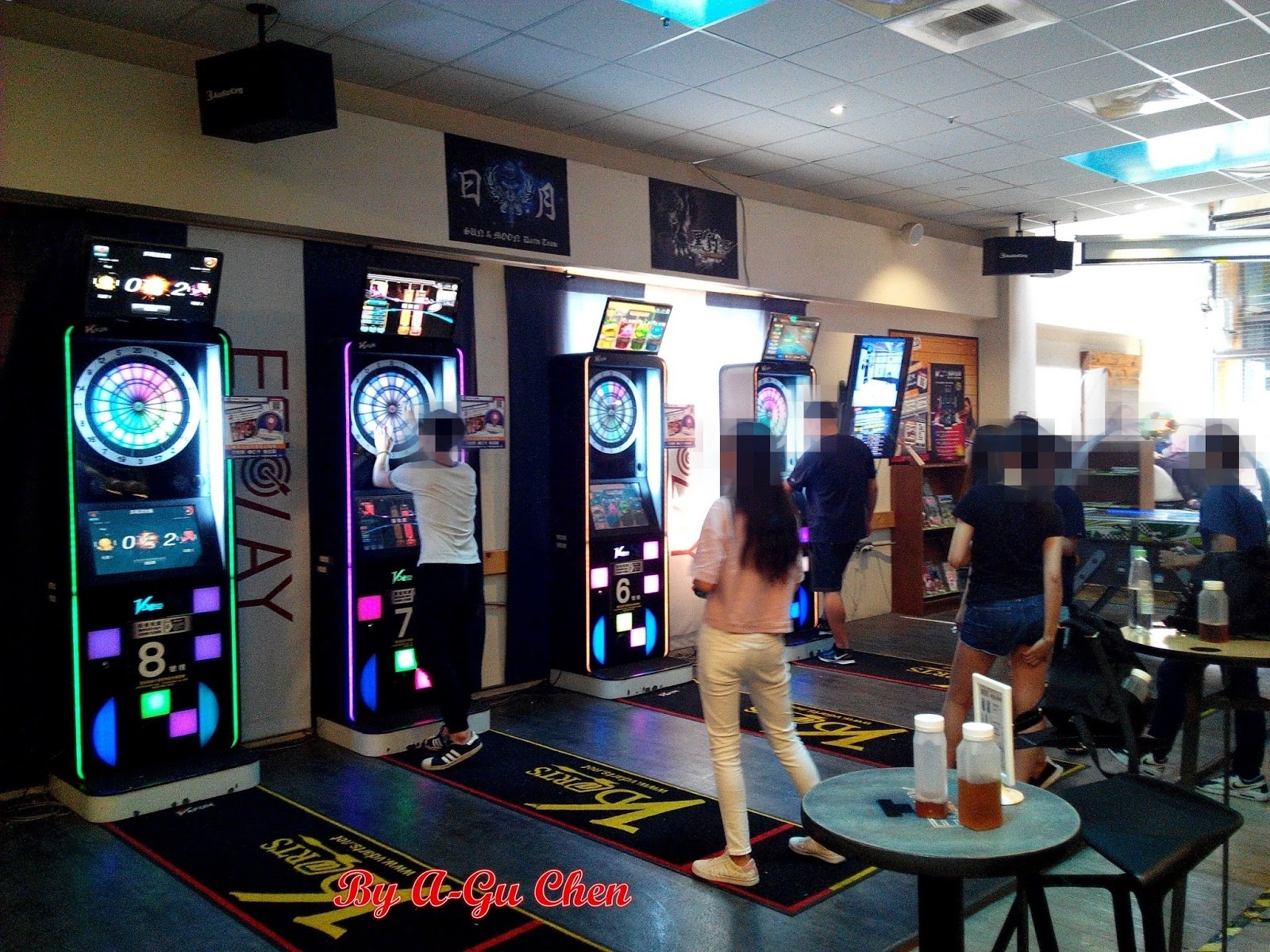 館方將原本置於兩區的電子飛鏢機檯整合到撞球區旁了。