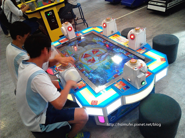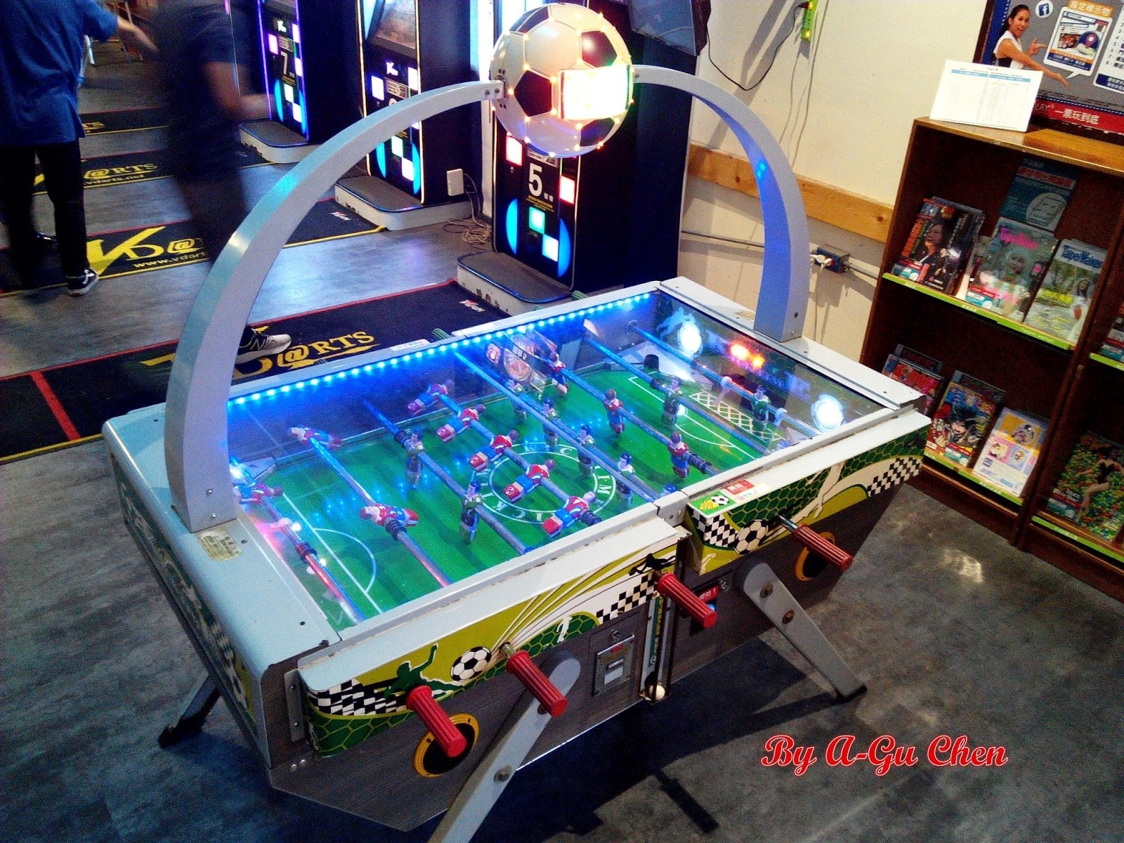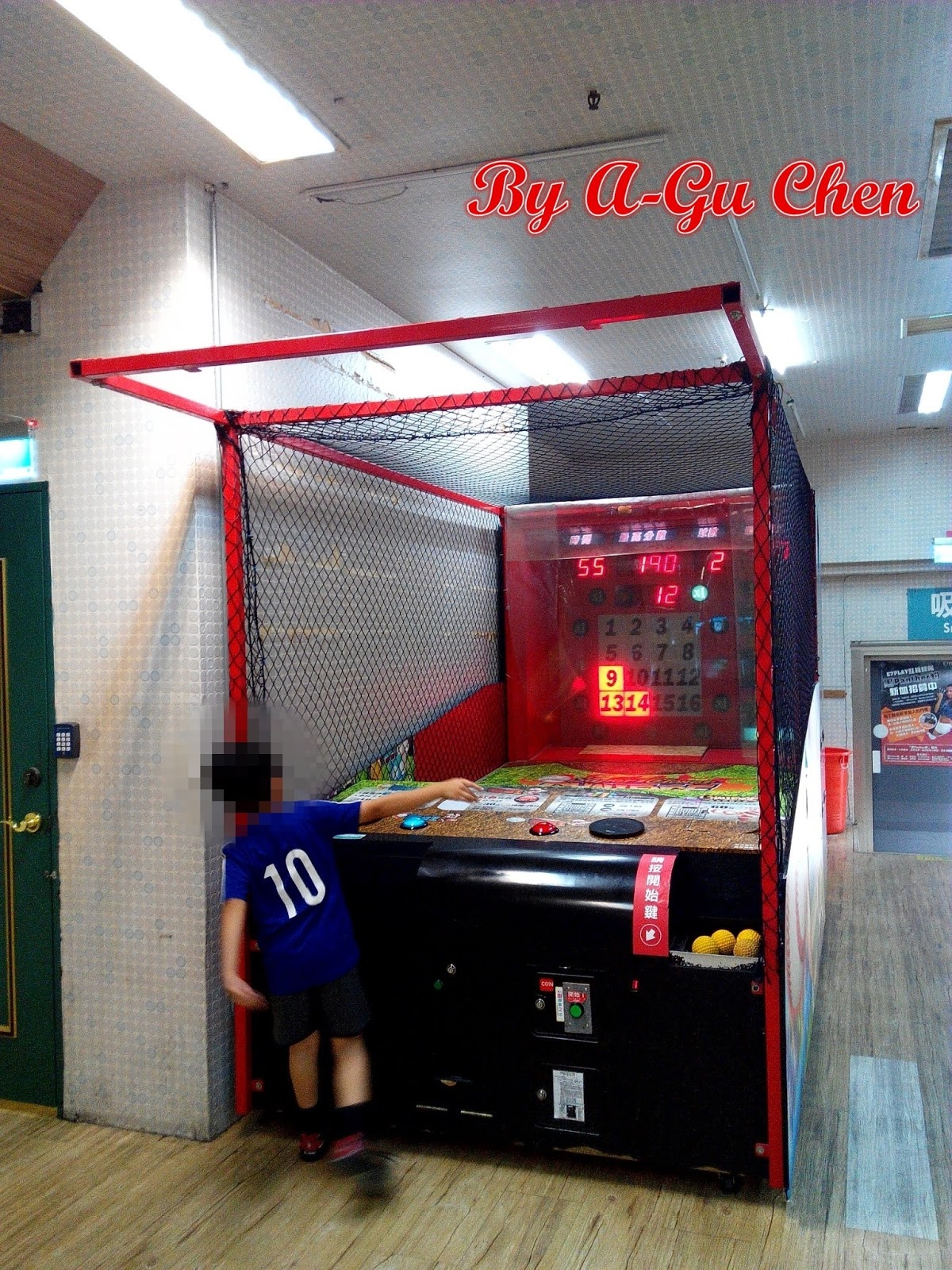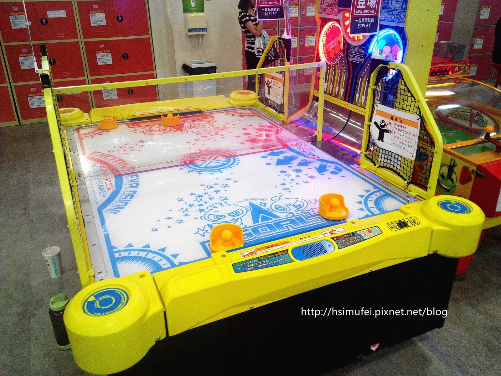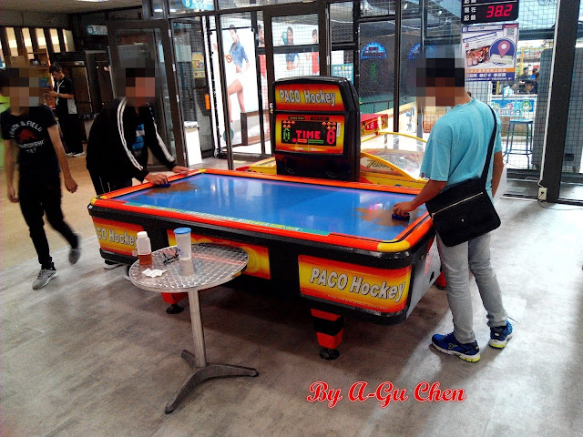 記得上次來只有一對一模式,而且推盤常飛出檯面,如今已改為這款個人覺得相當有趣的新機檯,除了檯面上你來我往的主推盤外,機檯也會不定時掉出一堆小推盤讓雙方來個大亂鬥。