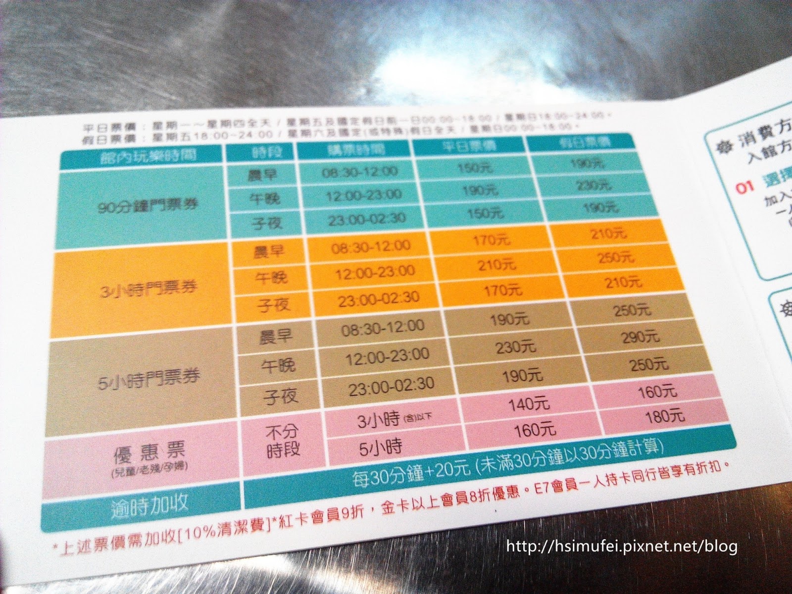 櫃臺旁牆面有消費說明,屬一票玩到底,館內設備都可免費使用,不過有些較熱門的設備有限次數或時間。