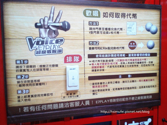 最近在各百貨相當火紅的歡唱電話亭,也出現在E7 Play 囉!一共有兩間,需投入代幣才能使用。一張門票可兌換兩枚代幣,一人每次限用一枚代幣,若無人等候可繼續使用。