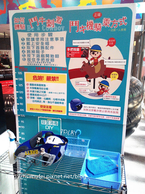 遊戲前需穿戴安全帽,並取下首飾、配件,玩法是模擬鬥牛的刺激感,牛型機體會不規則擺動,甚至旋轉,跨坐在上頭的玩家必須想辦法不讓自己被甩下去。以機體為圓心設置了一大圈安全氣墊以作保護。