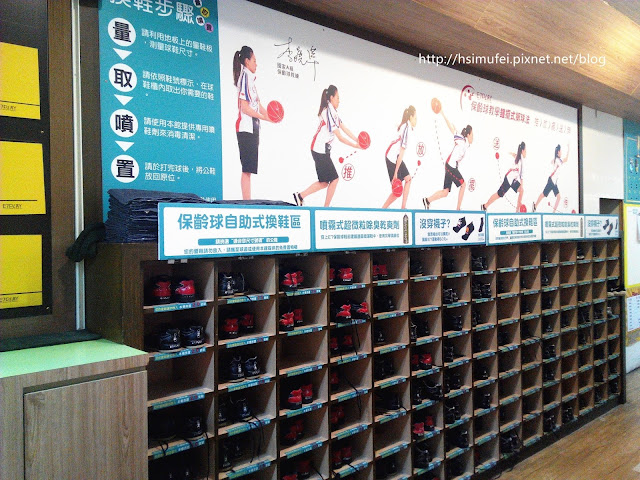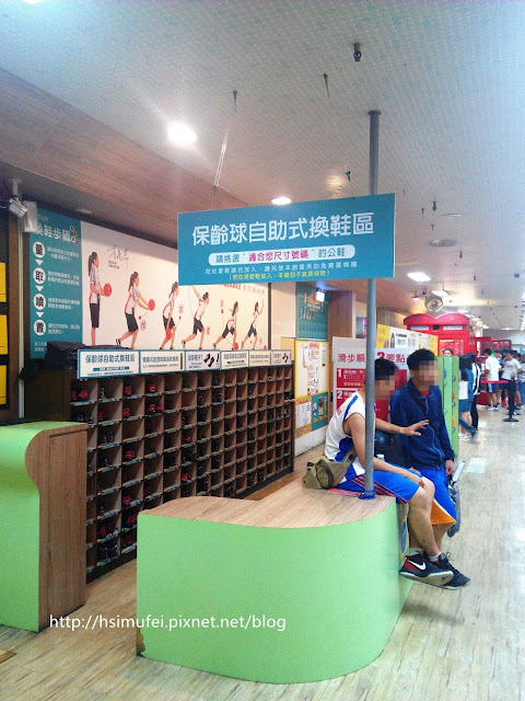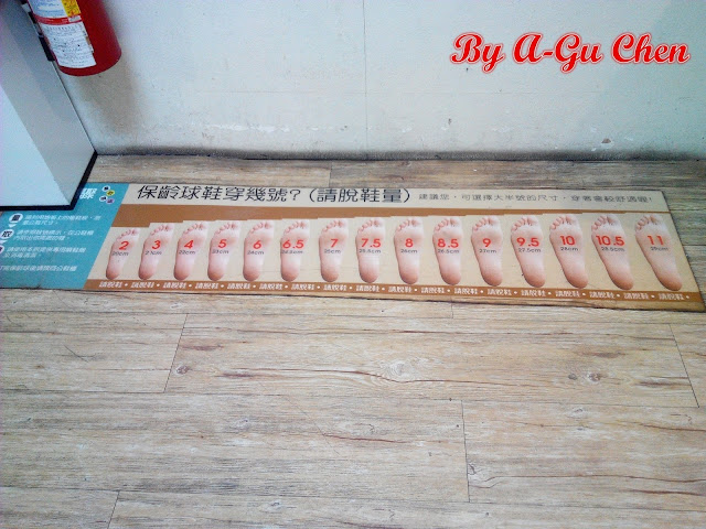 除了挑選公球外,還需先至自助換鞋區換穿尺寸適合的保齡球公鞋。