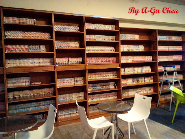 漫畫雜誌的書籍數量不少,但大多為舊作。可利用A 字梯拿取擺放在較高處的書籍。