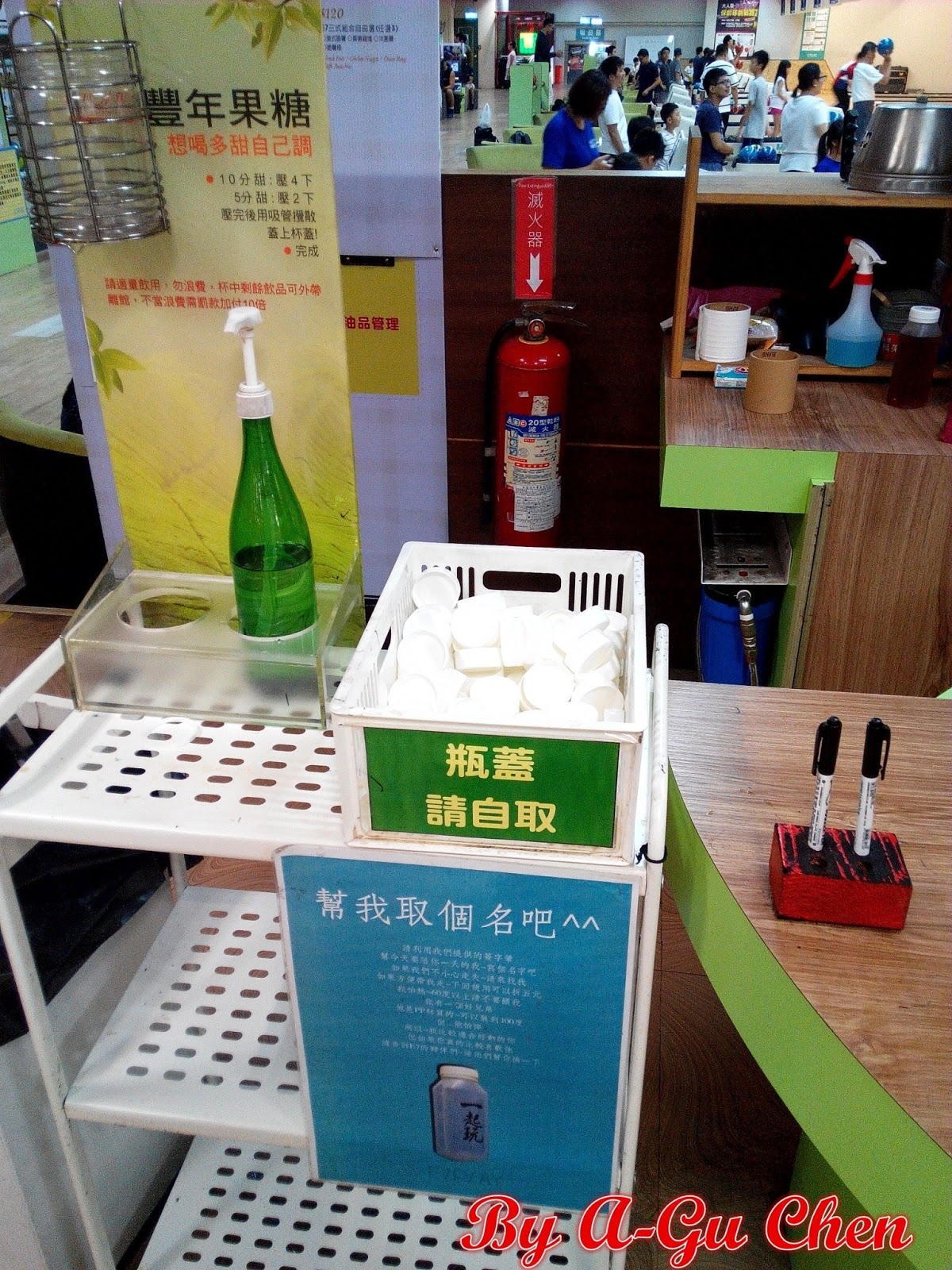 裝好自己的飲料後,就自取瓶蓋拴上吧!店家並提供奇異筆讓客人在瓶蓋上作標記,避免彼此混淆。