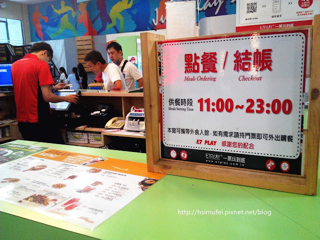 租借處旁為點餐、結帳區,館內可攜帶外食,也可直接在館內點餐,若有外出購物需求可持門票外出。