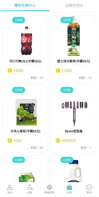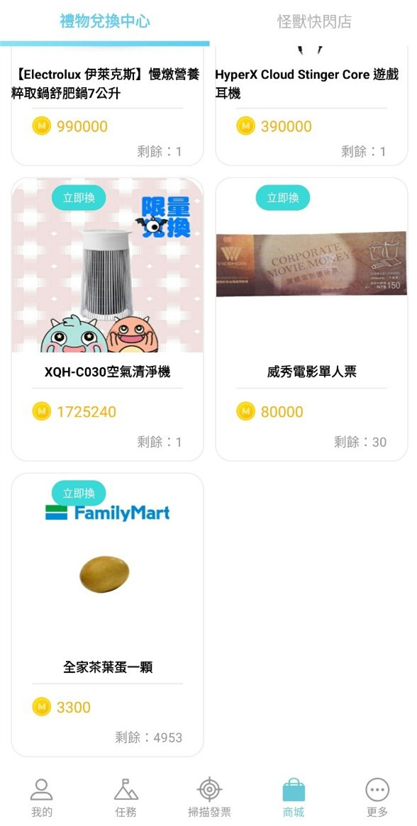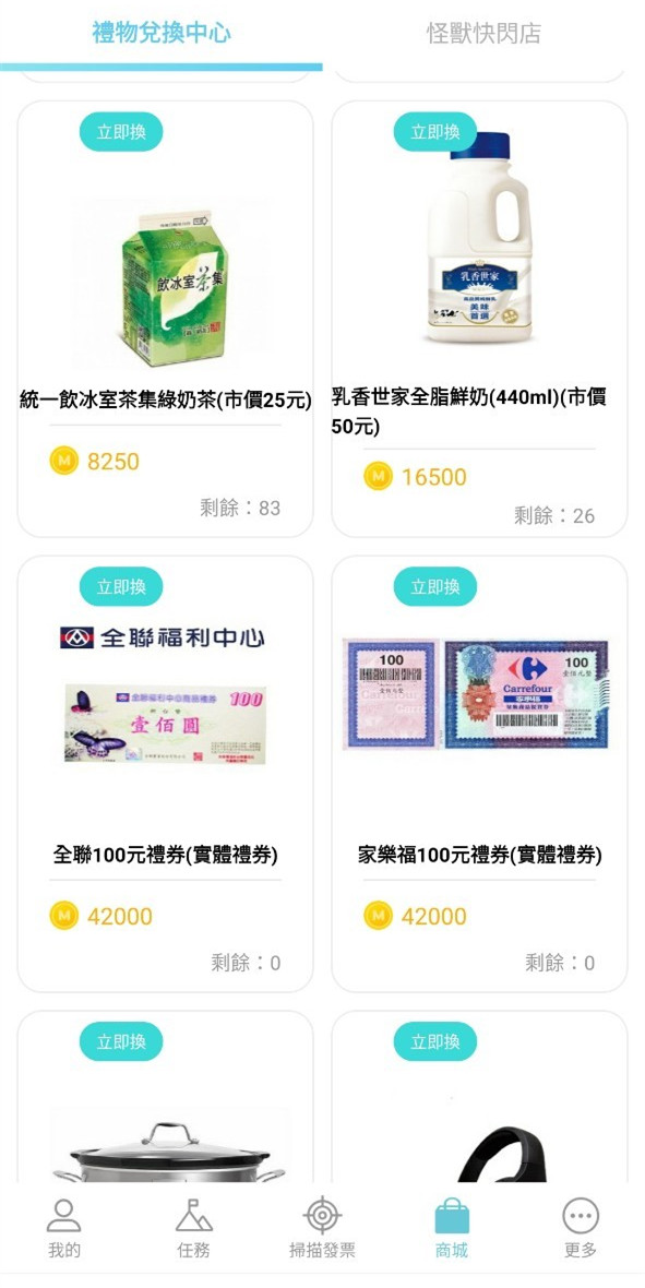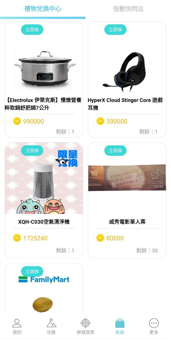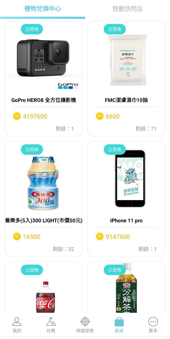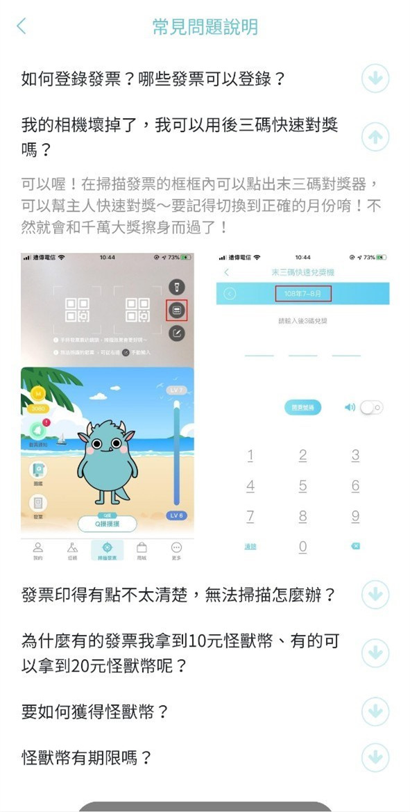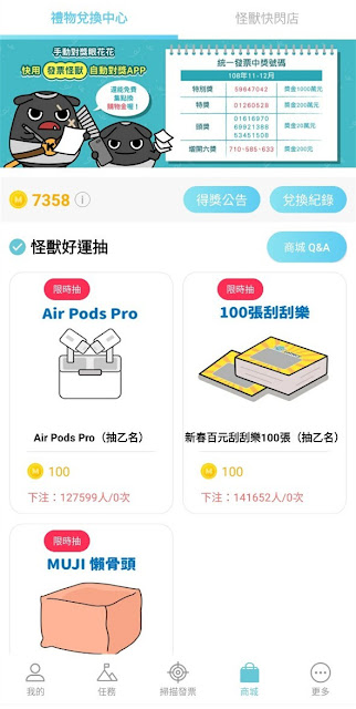 接下來就可以開始掃描發票養怪獸、賺怪獸幣換獎品囉!