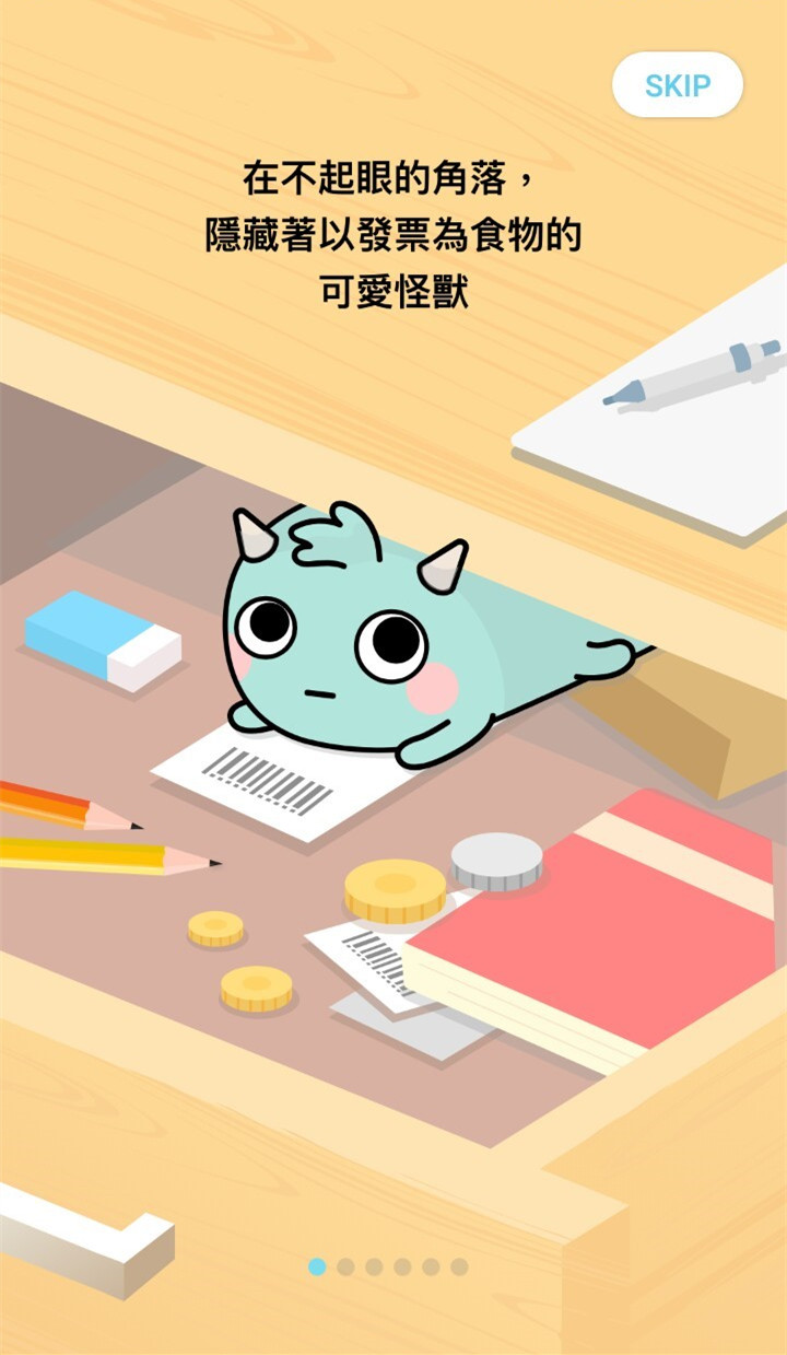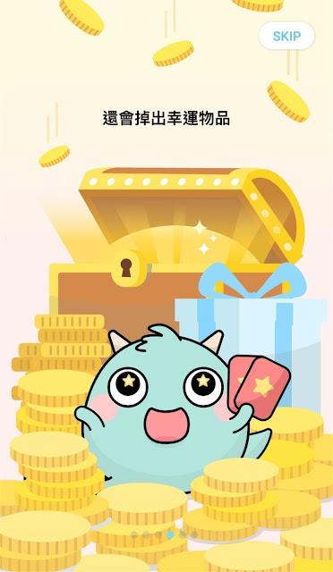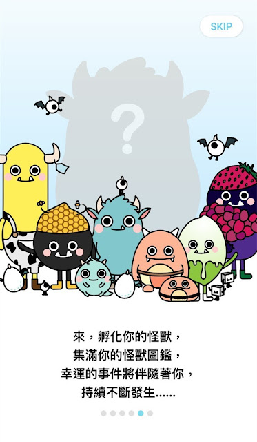 安裝完成後開啟 APP,會先跳出可愛的介紹,也可點選右上的【SKIP】略過。