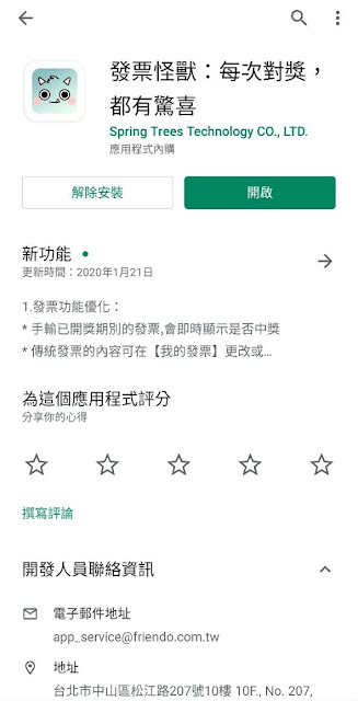 在 Google Play商店搜尋「發票怪獸」即可進行安裝,檔案大小為 19.38MB。