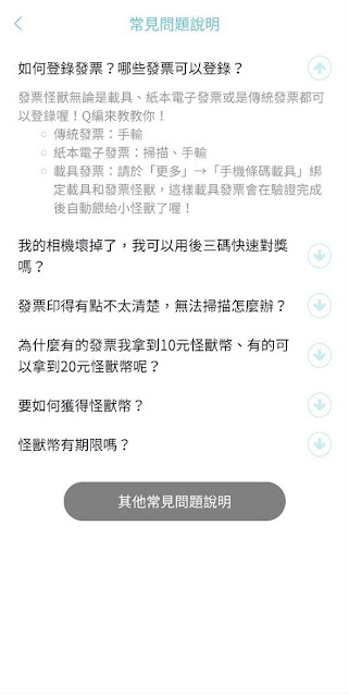 個人原只使用「發票集點王」,不僅可快速對獎,又可集點抽獎或兌獎,後來在友人介紹下,下載了功能類似但更有趣,且兌換的獎品也不錯的「發票怪獸」。