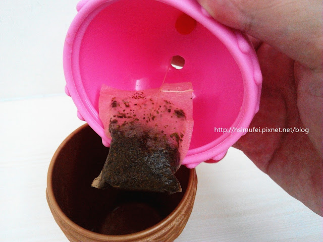 正中央的洞口可用來插吸管或放入茶包後由此處將絲線拉出。