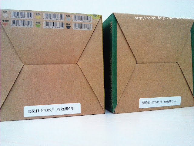 底部貼有製造日期與有效日期,新的包裝更多了六種顏色標示。