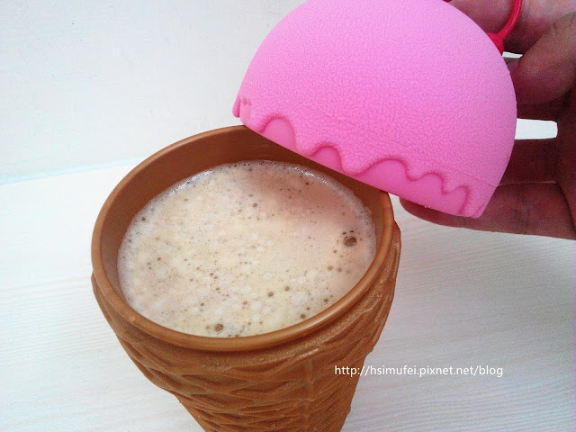 拿冰淇淋杯來裝飲料(圖中為冰咖啡),喝起來似乎更有消暑的感覺呢!