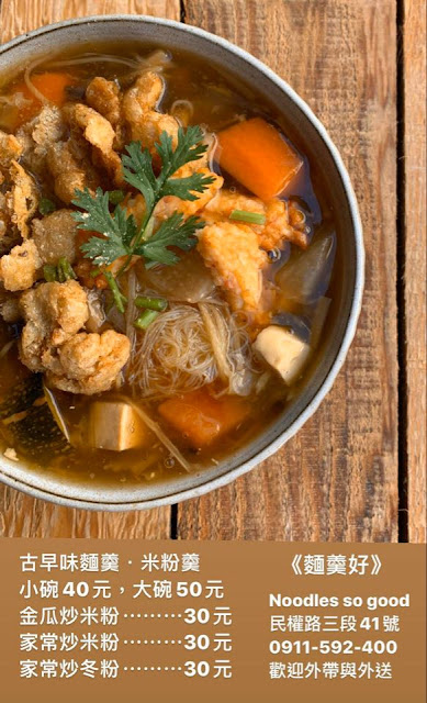 餐點主打麵羹、米粉羹與炒米粉。羹類大、小碗分別是50與40元;炒米粉大、小份則各是50元與30元。