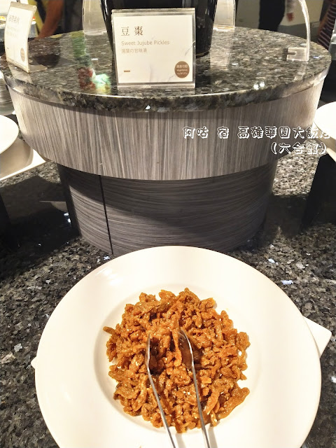 自助區中間提供素食清粥小菜類,有豆棗、海帶素肉、牛蒡絲、脆瓜、花生麵筋。