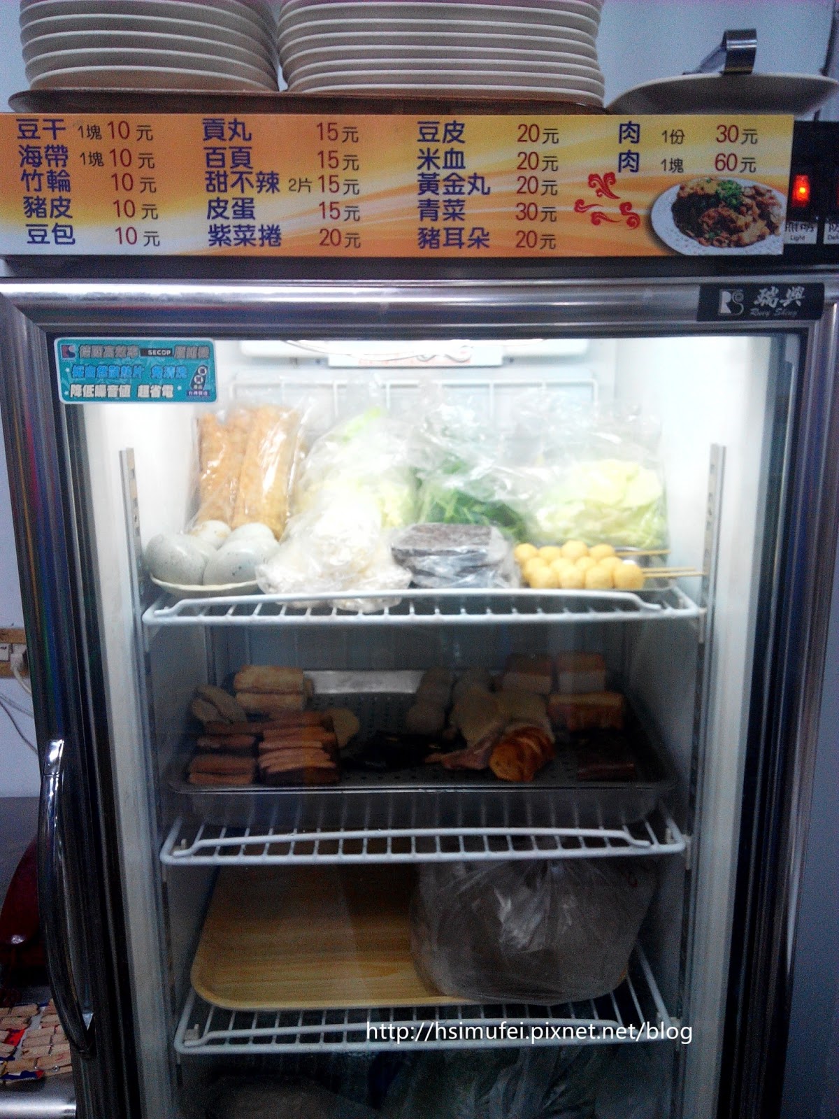 料理區後方的冰櫃裡有各式滷味,供客人自行夾取,價位表貼在冰櫃上方。