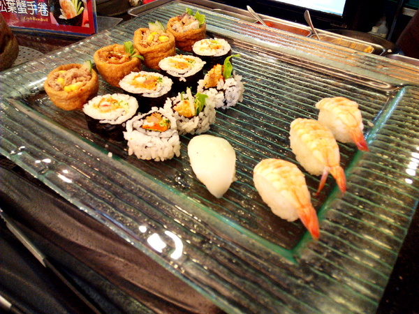 自助肉品區旁邊為壽司手卷區,壽司會先做好供客人自行取用,手卷則需請店員現點現做。