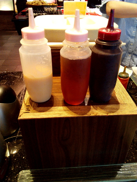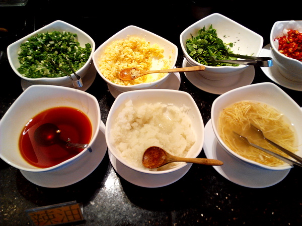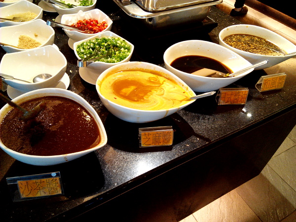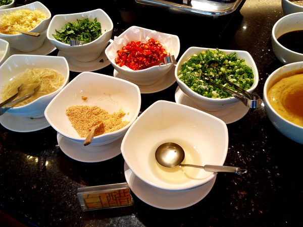 醬料區相當豐富,讓人看得眼花撩亂,有沙茶醬、和風醬、芝麻醬、日式醬油、蔥末、花生粉、辣椒、薑絲、蒜頭、蒜泥、辣油等,旁邊提供來自大武山的生蛋及打蛋器,怕客人不慎弄到手,這裡也貼心地準備了衛生紙可以擦拭。