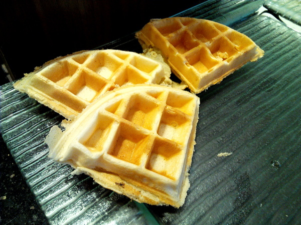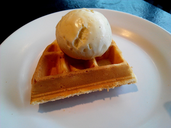 鬆餅可搭配店家提供的蜂蜜、煉乳或巧克力醬,也可以挖冰淇淋放上去變成冰淇淋鬆餅,頓時覺得高級了不少。