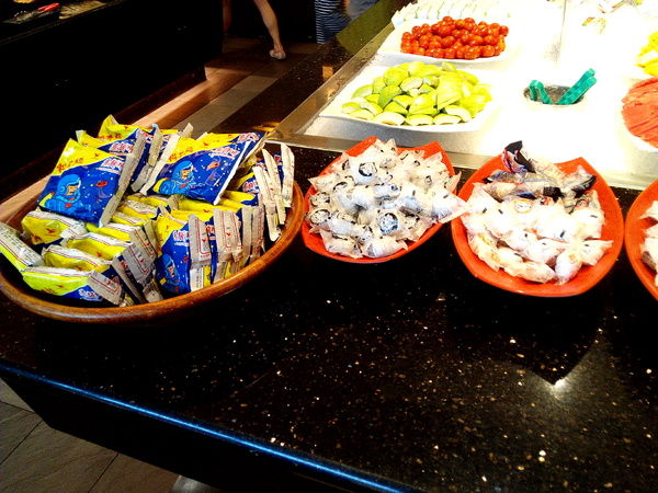 水果部分相當新鮮,當天提供的是西瓜、楊桃、小蕃茄及芭樂,旁邊還放有甘梅粉。