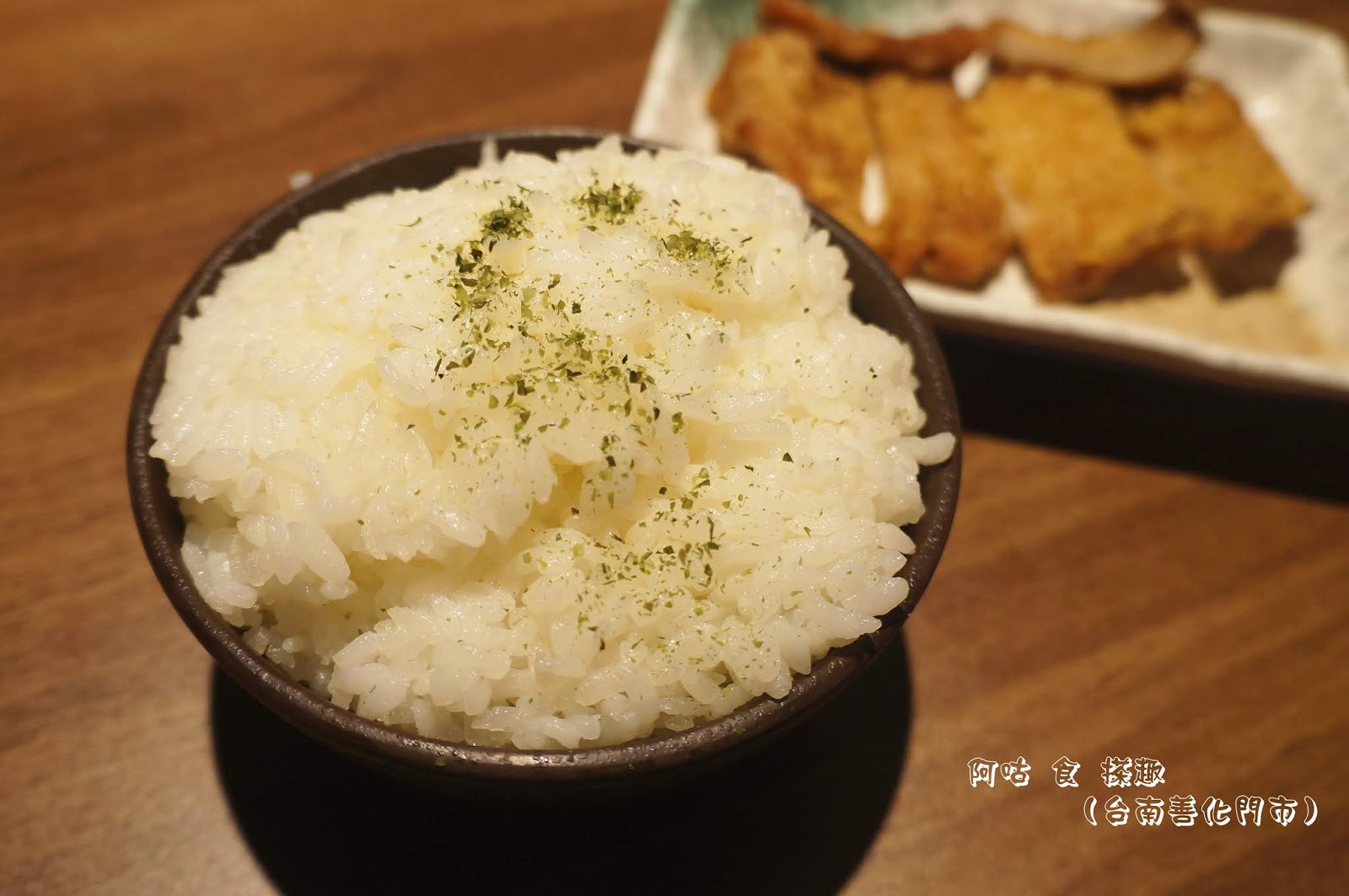 白飯盛到尖起的程度,上頭並撒了些許海苔粉。