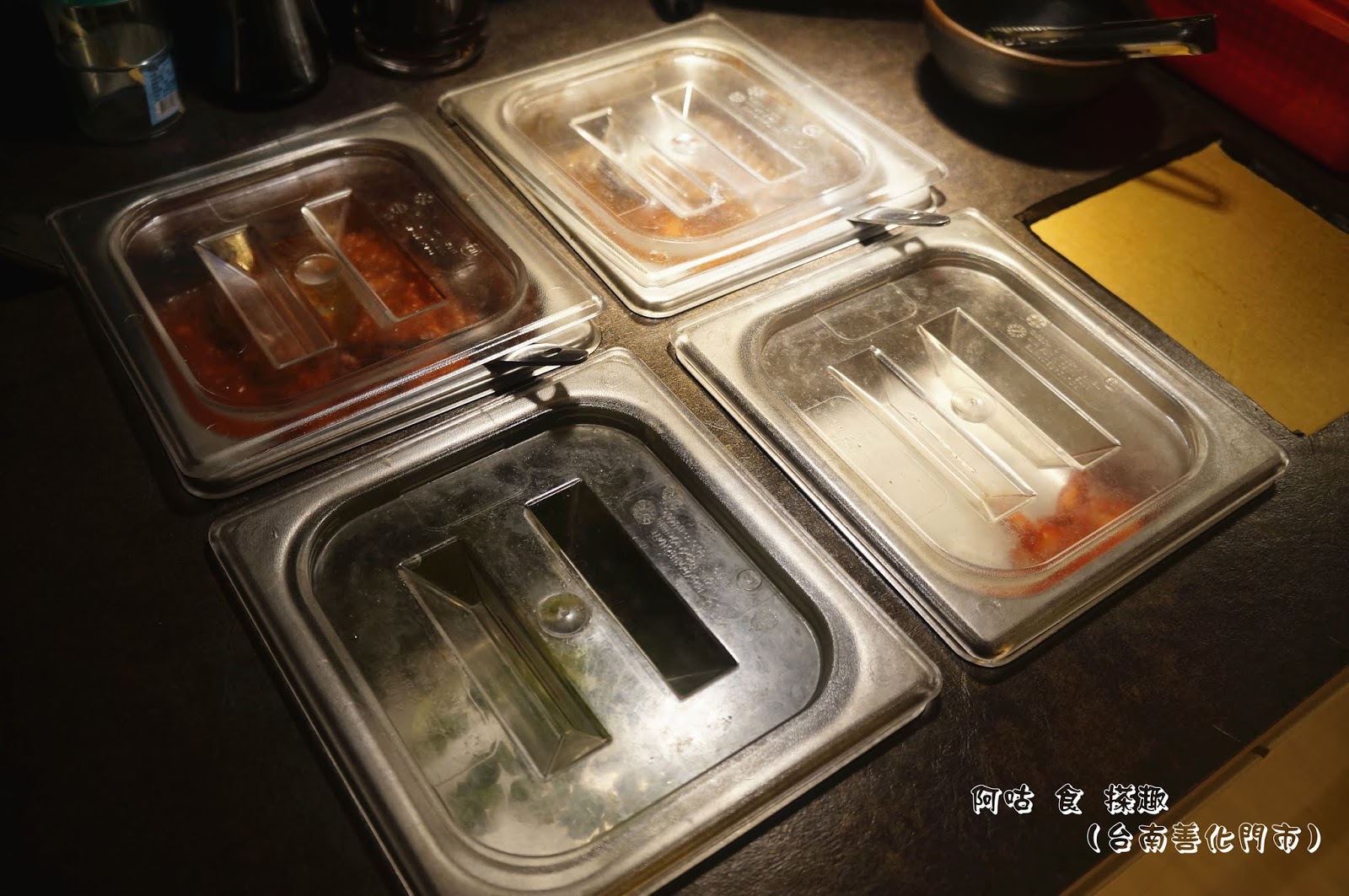 此處提供醬料與餐具自取。