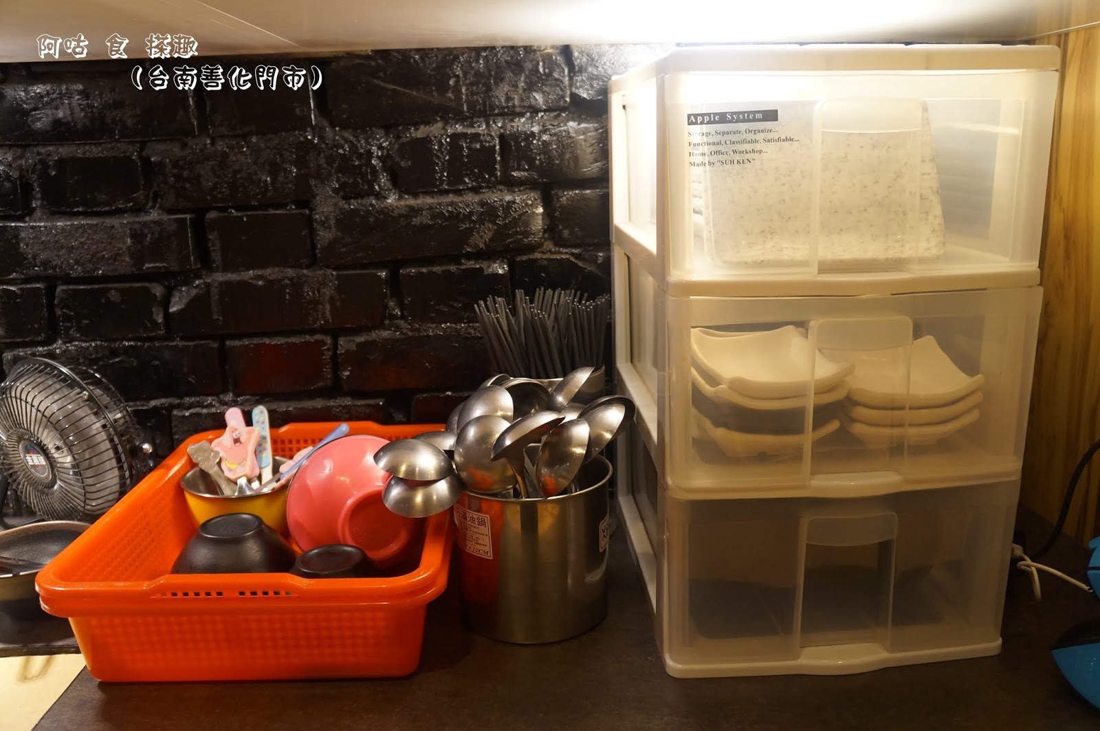 內用區特別保留了一面紅磚牆,與其他布置形成強烈反差,似乎在呼應其古早味系列餐點。
