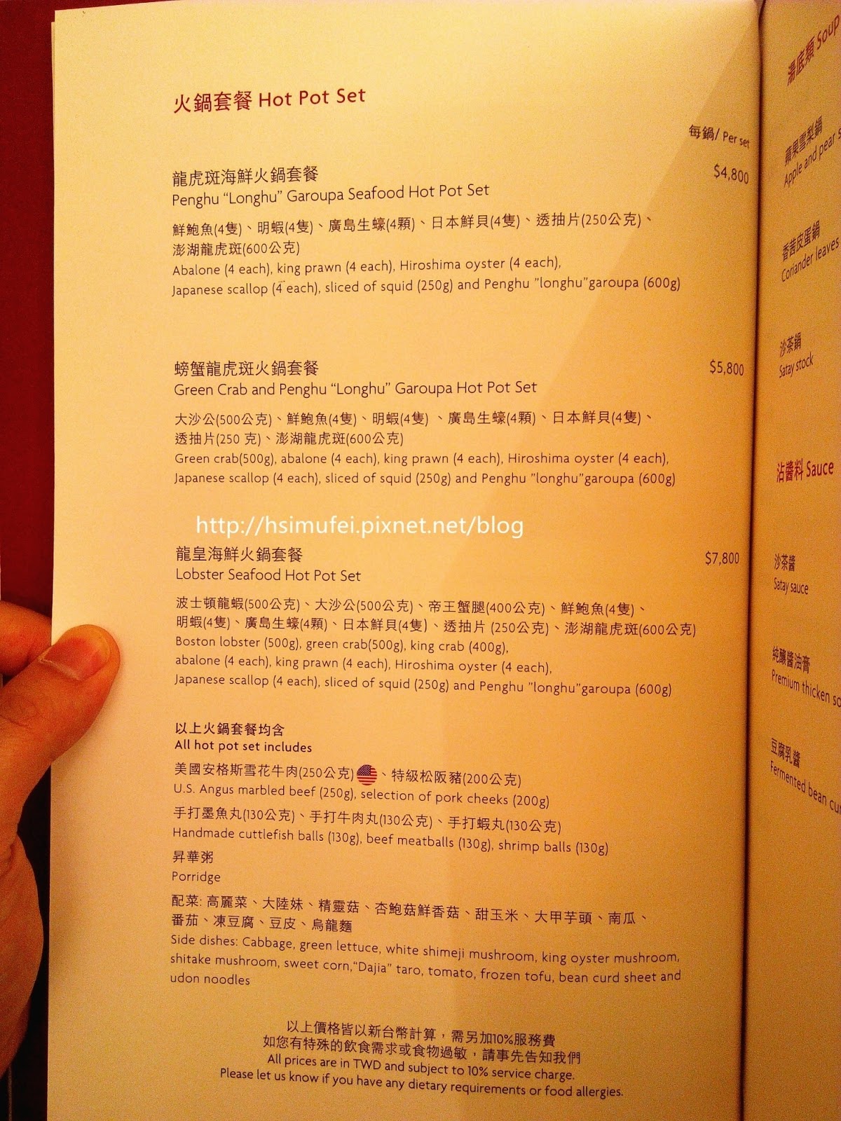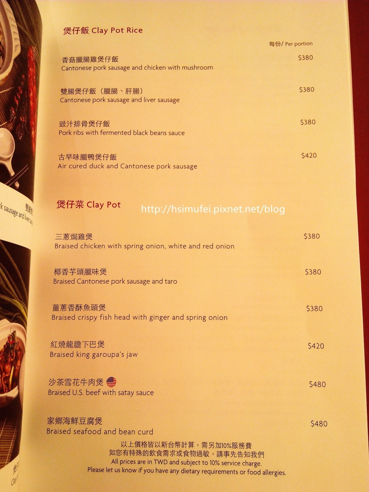 紅色MENU內容則以煲仔飯、煲仔菜、火鍋類與其配菜為主。
