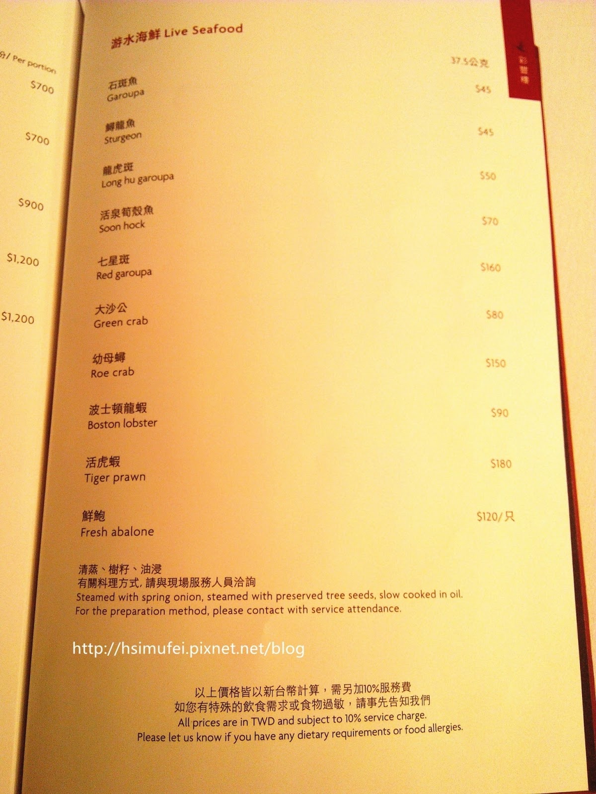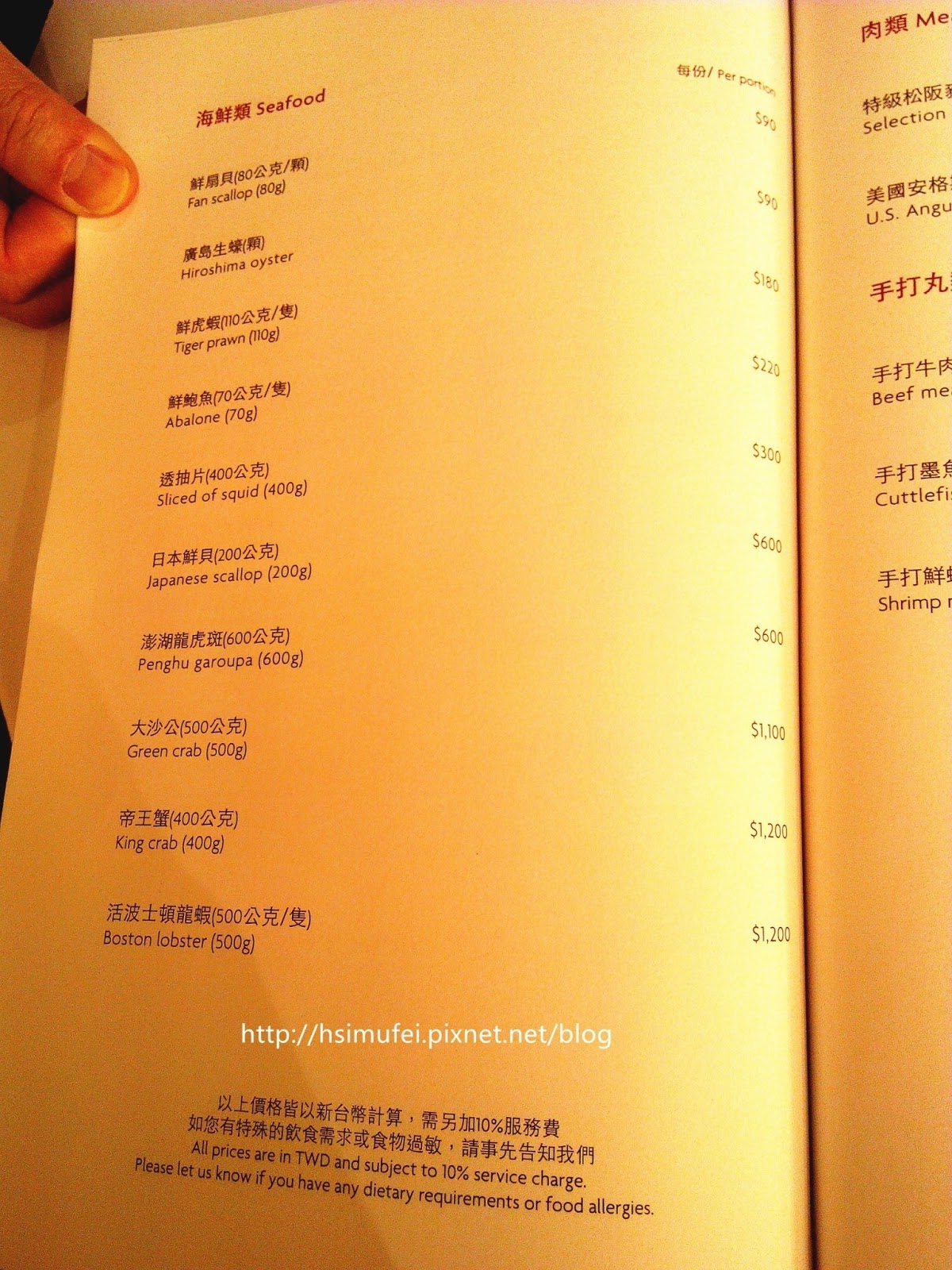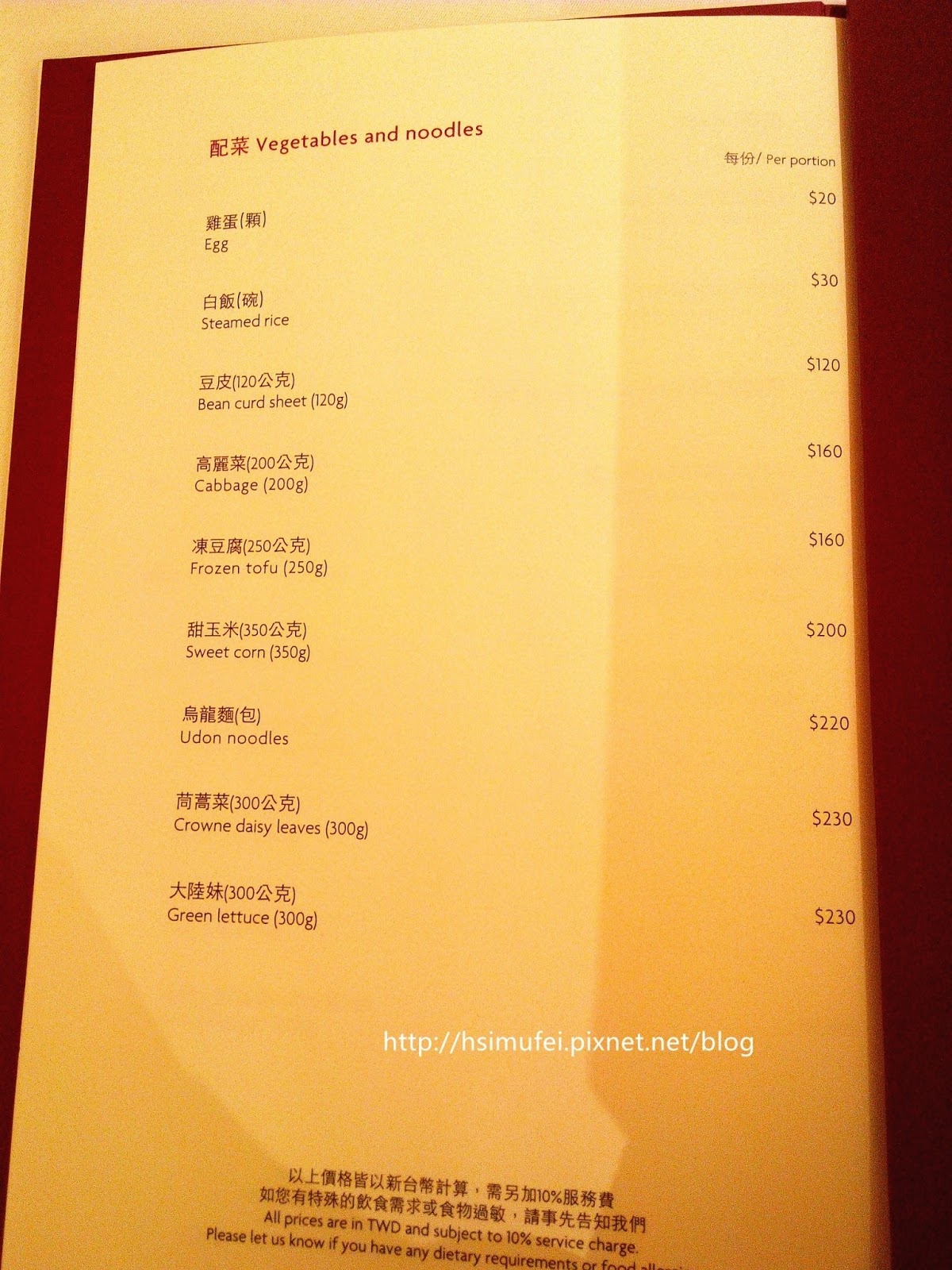 所有餐點都加上10%服務費。