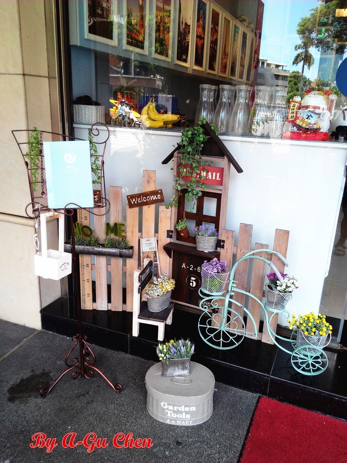 門外的布置以可愛而簡樸的鄉村風為主。一旁架上放有MENU可先查看餐點與價位。