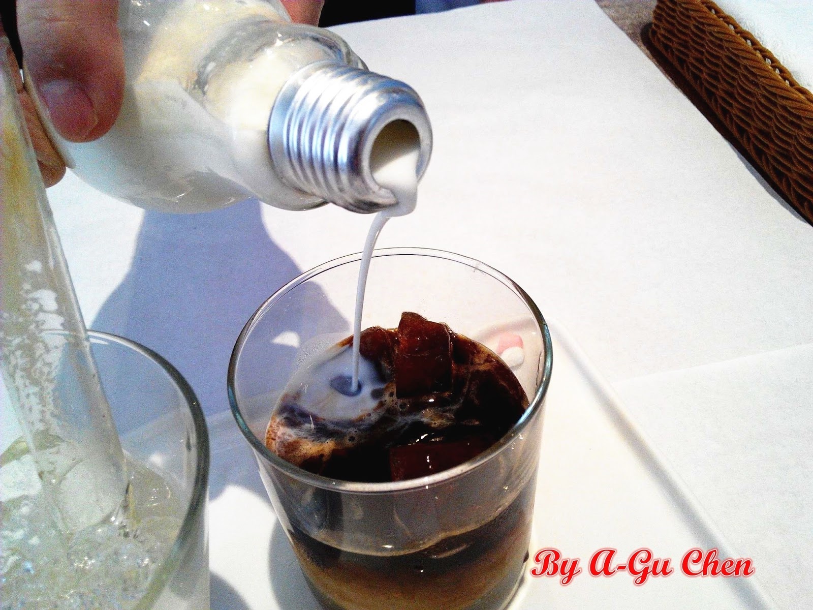 接著拿起燈泡造型容器裝的鮮奶隨喜好自行調整濃度,一切過程都是 DIY!好喝且新鮮感十足。