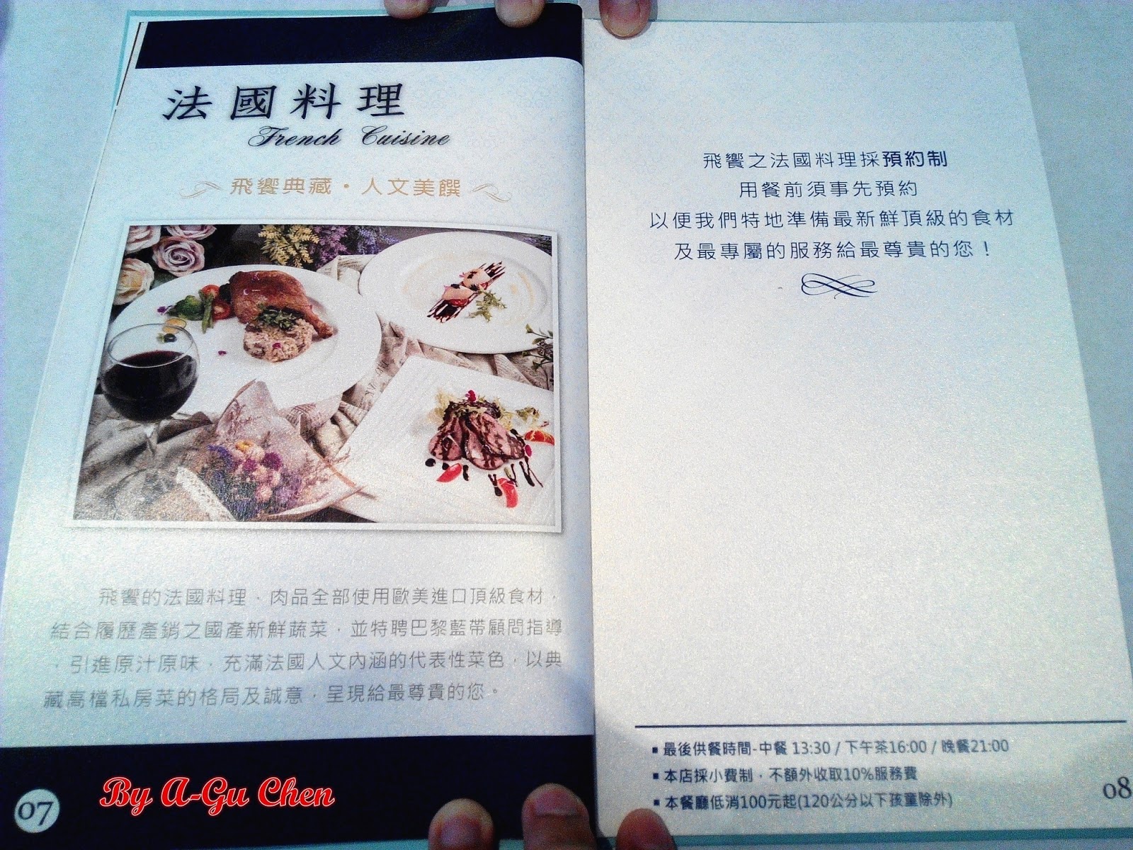 法國料理是由餐廳特聘巴黎藍帶顧問指導烹飪,力求原汁原味呈現餐點美味。另外,因大多食材都由國外進口,為顧及新鮮及食材品質,不採用冷凍保存,故採預約制。因此若想一嘗美食,可要記得先去電預約喔。