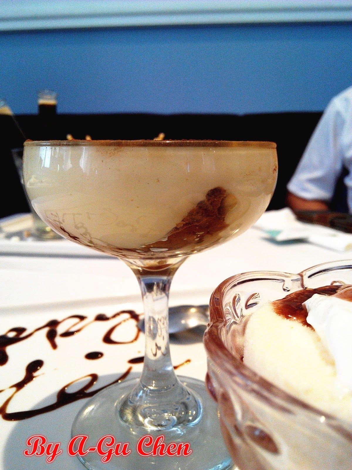這道飲品的吸睛程度絕不下於主餐,雖然早有耳聞其特色,親眼目睹還是感到新奇,連鄰桌的兩對老夫婦也嘖嘖稱奇,直往我們桌上瞧。