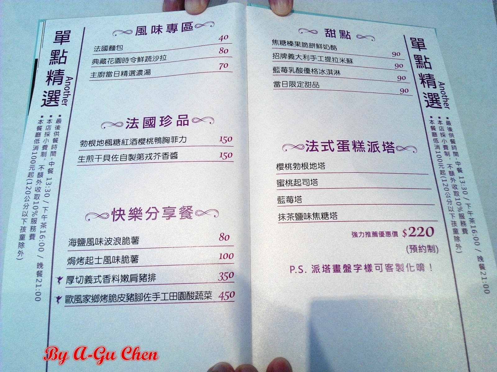 除了套餐外,也可單點各種品項餐點,特別一提的是甜點盤上的字樣可客製化喔!