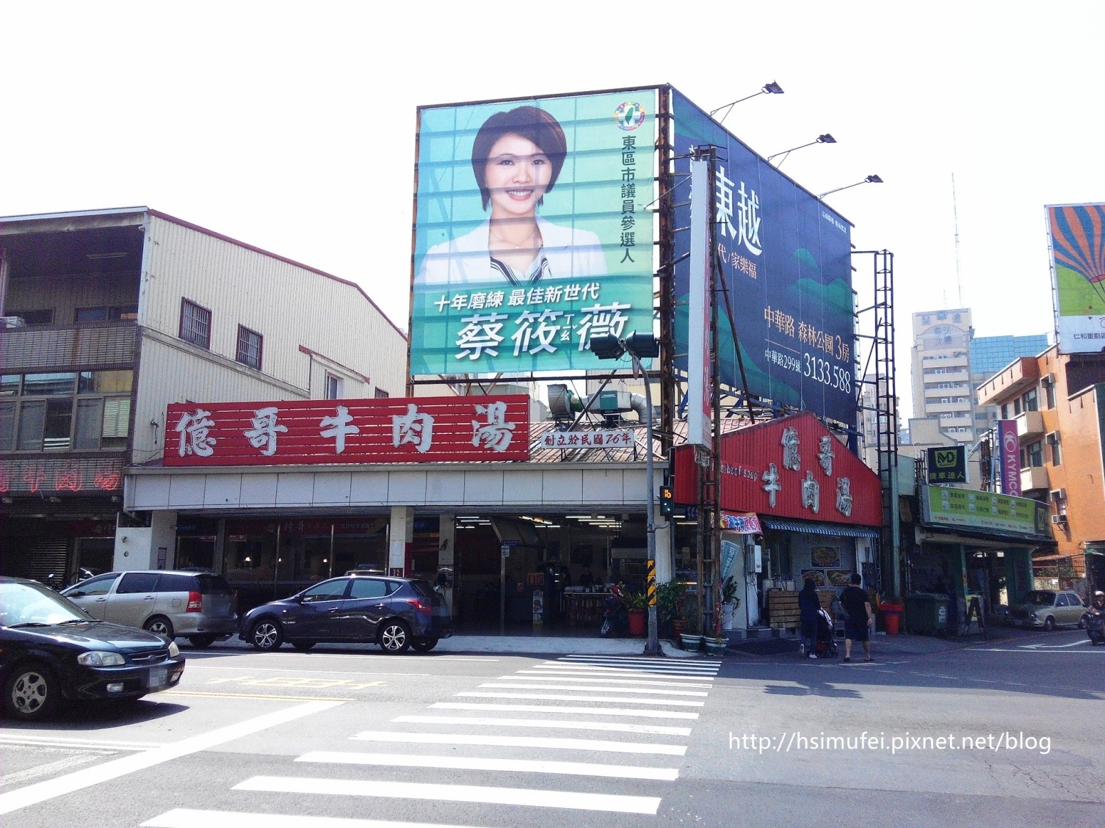 前些日子看到饕客好友到安平的二牛牛肉湯用餐後,對其讚不絕口的評價,想到師出同源的億哥牛肉湯其實就離家不遠,便與家人們一同前往嘗嘗鮮囉!店家位於東區裕農路上,旁邊就是後甲圓環,近南紡購物中心,剛好在三角窗的位置,標的非常顯眼。