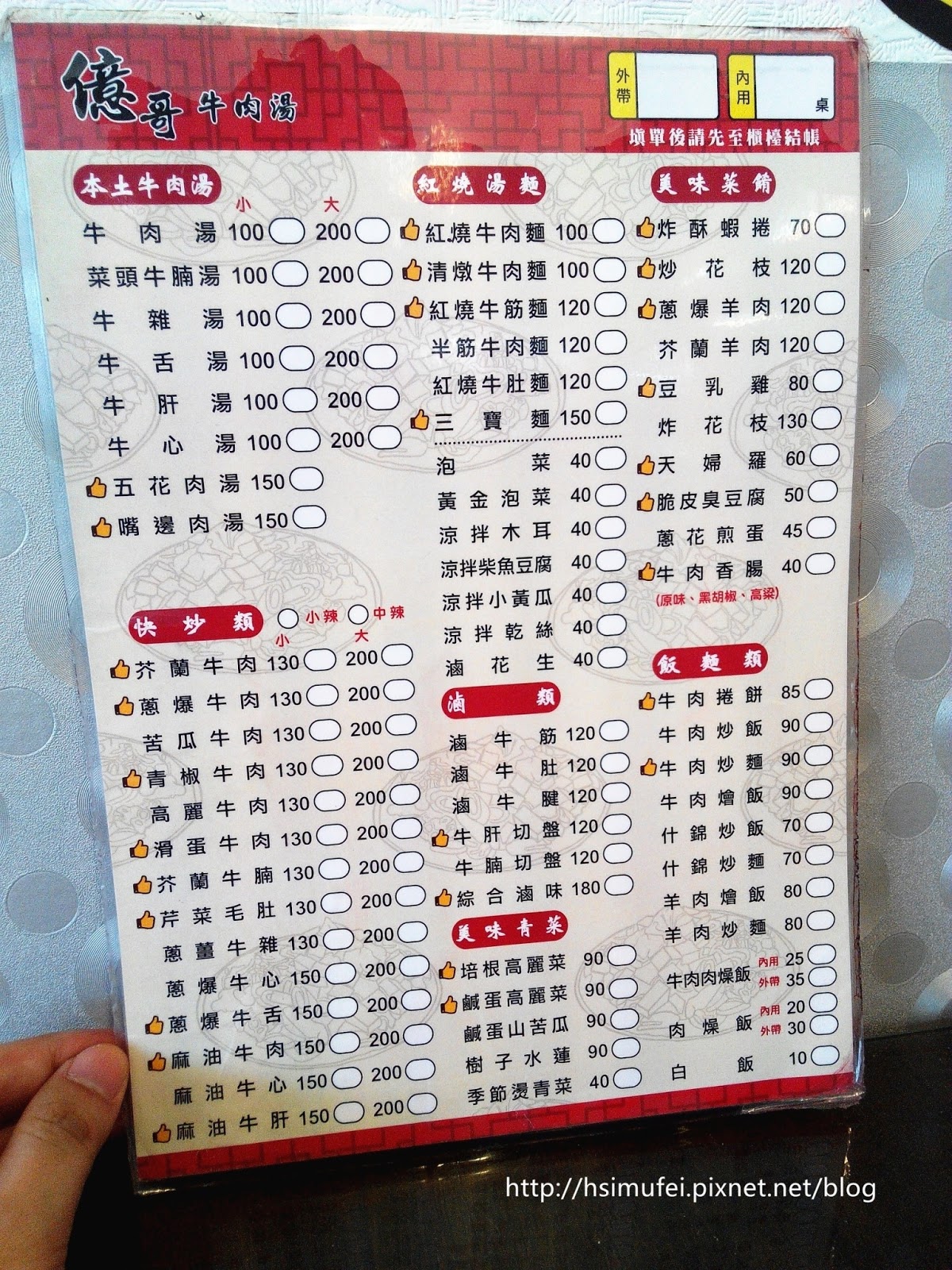 億哥提供的餐點有牛肉湯與牛肉爐兩大類。