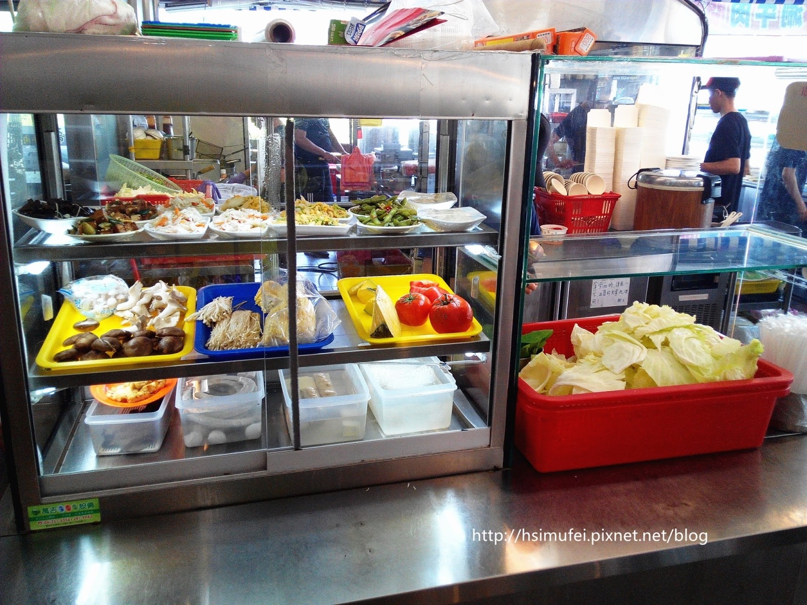 店家販售的小菜置於此處展示櫃中,小菜類均一價40元。