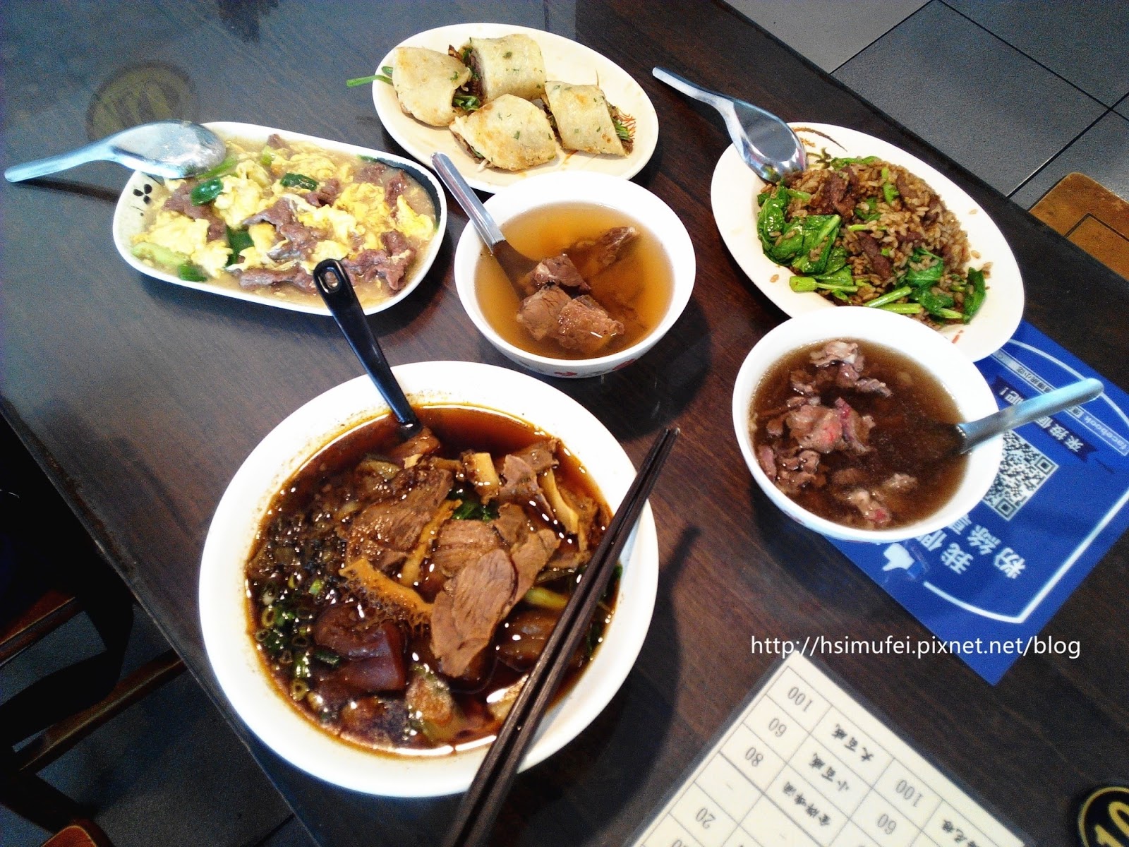 我們一行人點了三寶麵、五花肉湯、嘴邊肉湯、牛肉炒飯、滑蛋牛肉與牛肉捲餅。