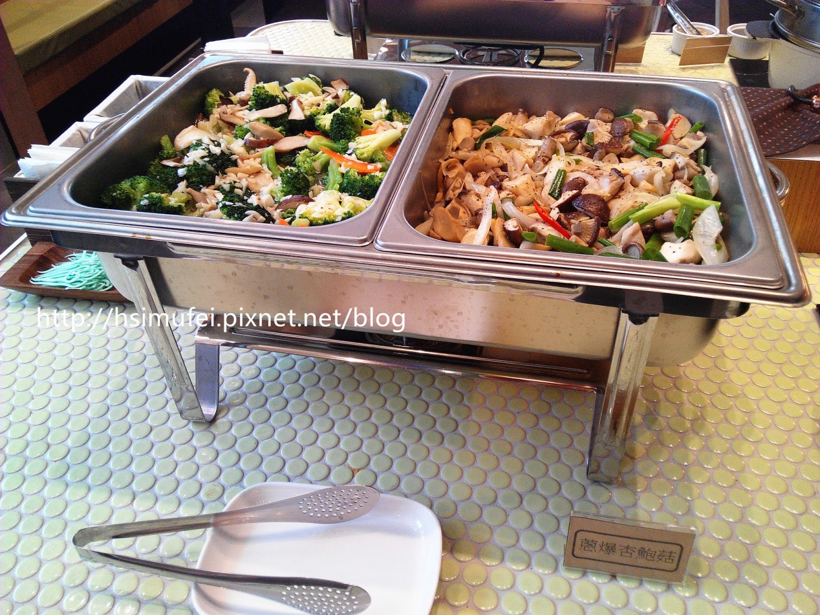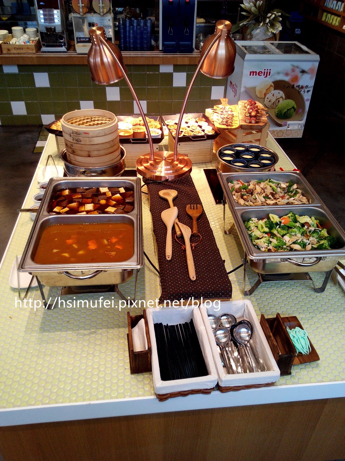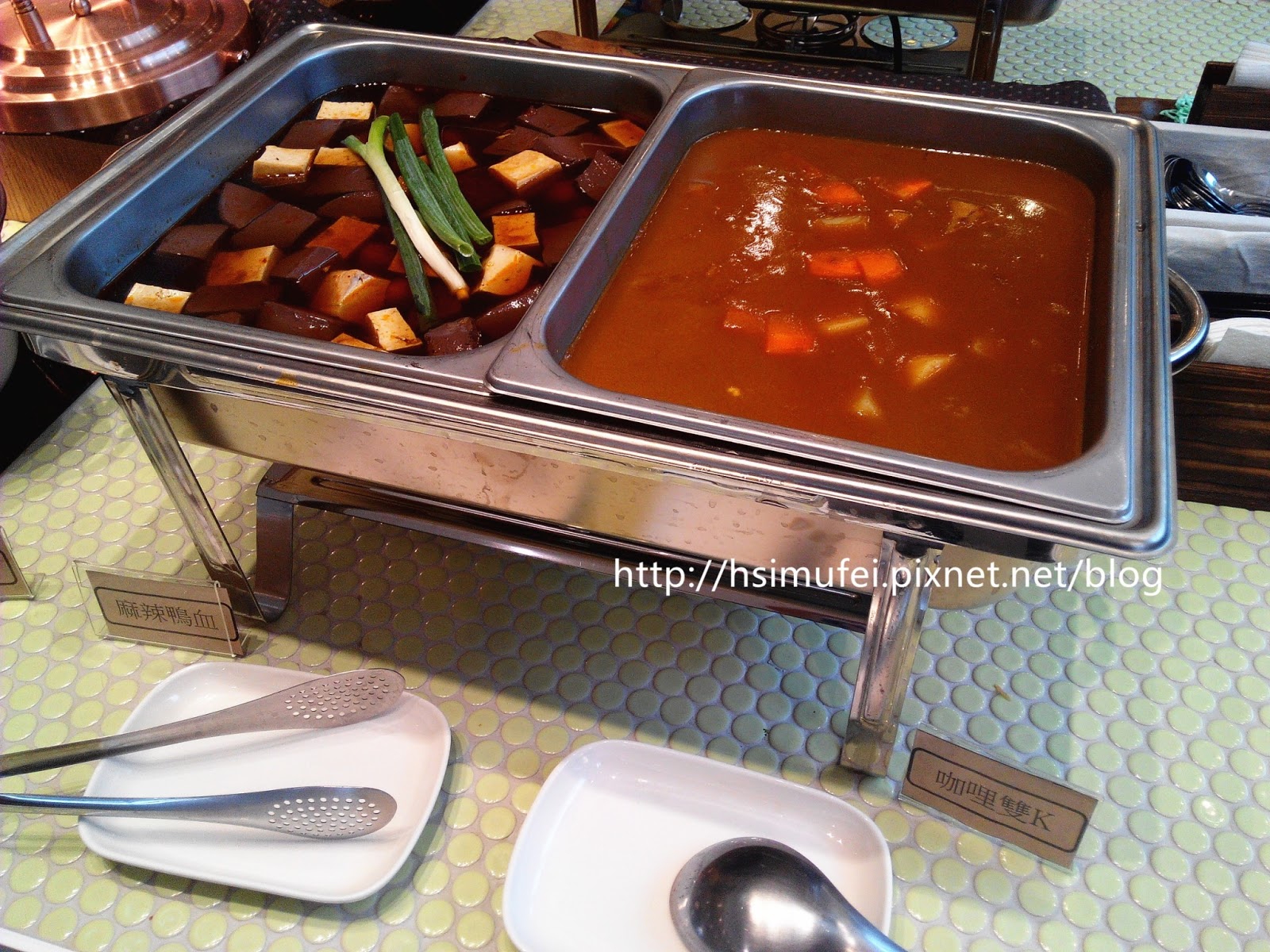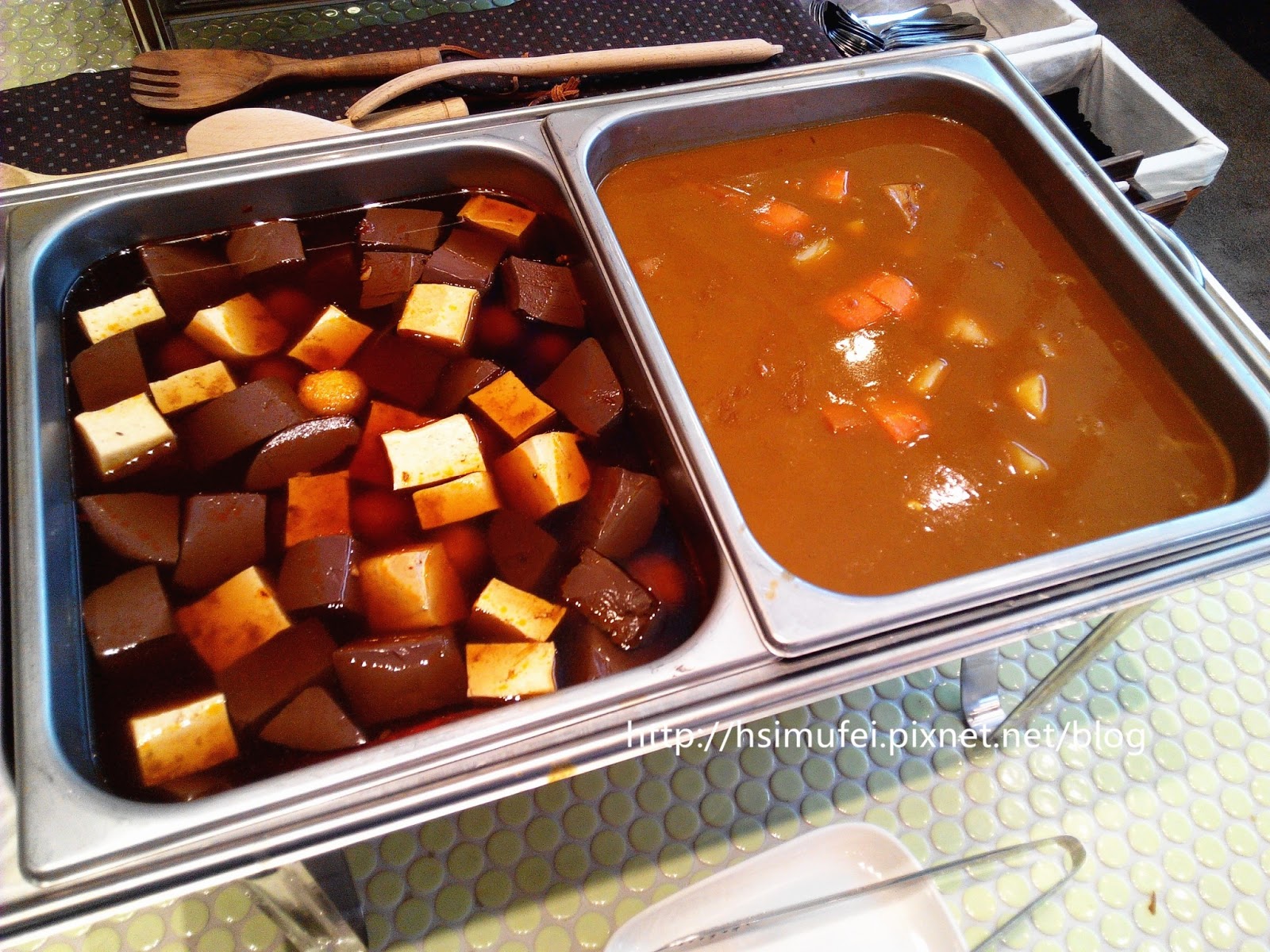 其他還有奶香蒸蛋、蔥爆杏鮑菇、香菇炒青花菜佐大蒜、咖哩雙K 、麻辣豆腐與鴨血及燒賣等熱食。